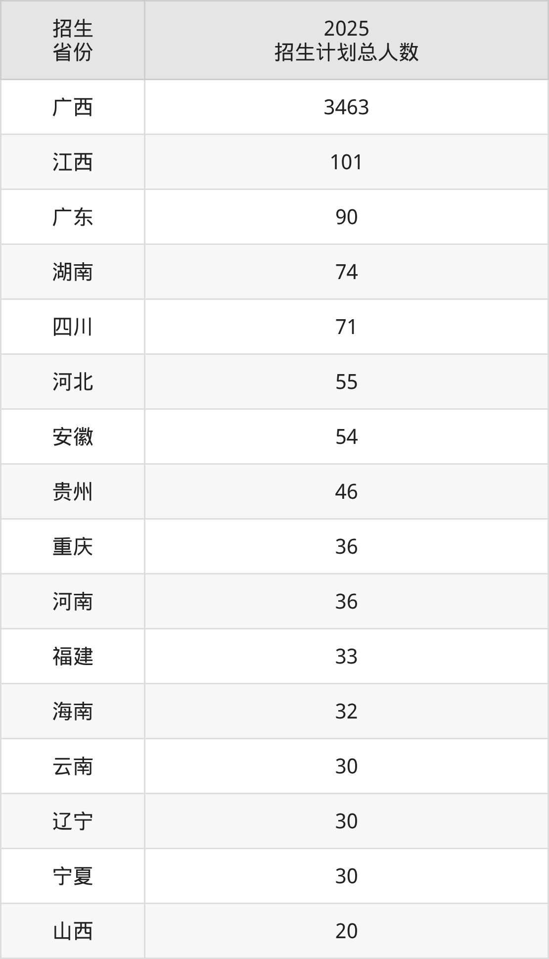 2025年北部湾大学面向全国24个省市开展本科招生;招生专业共42个,招生人数共4312人。2025年在广西壮族自治区招生计划总人数是3463人,其中,北部湾大学在广西壮族自治区招生人数最多的是英语。北部湾大学在各省具体招生人数情况如下表。