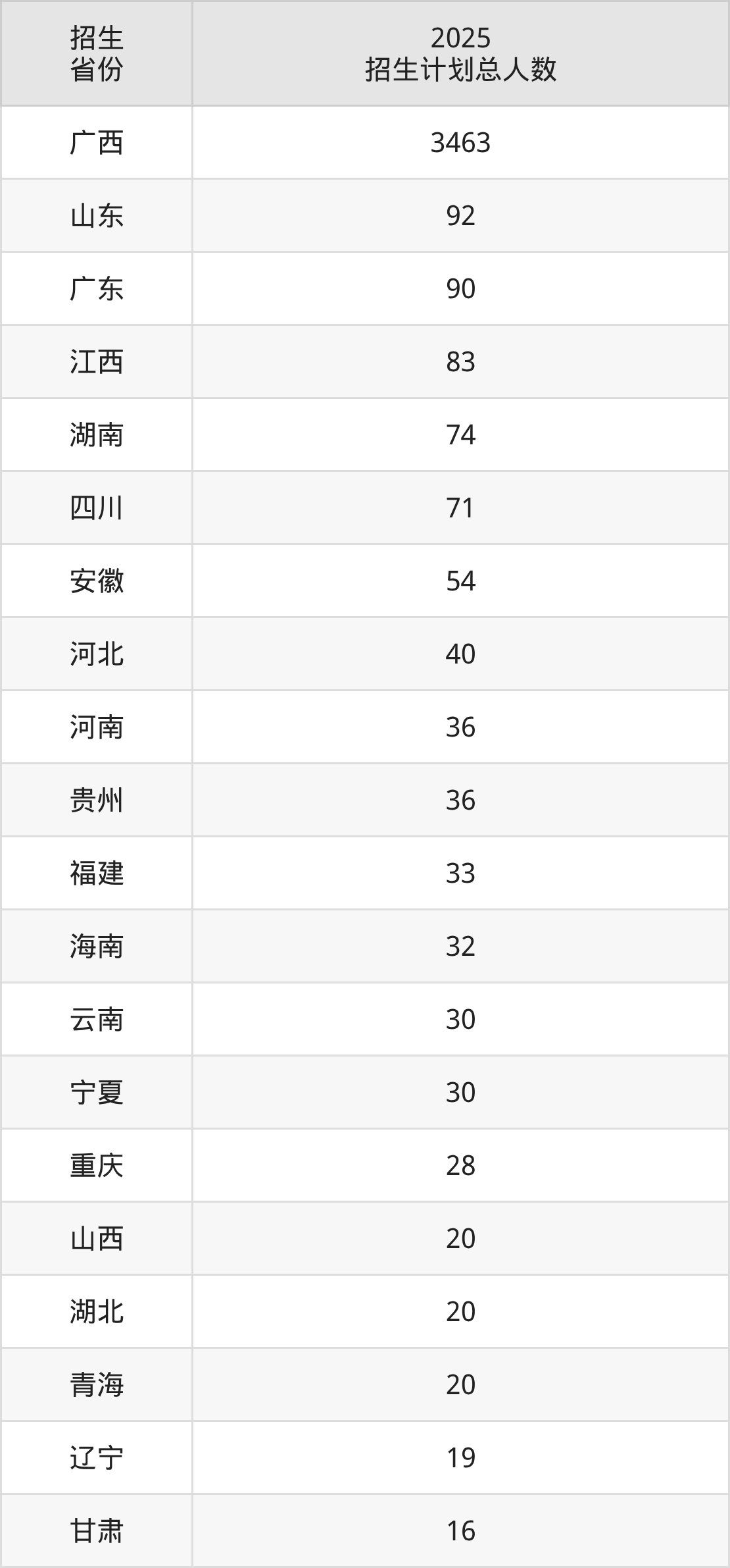 2025年北部湾大学面向全国25个省市开展本科招生;招生专业共39个,招生人数共4342人。2025年在广西壮族自治区招生计划总人数是3463人,其中,北部湾大学在广西壮族自治区招生人数最多的是英语。北部湾大学在各省具体招生人数情况如下表。