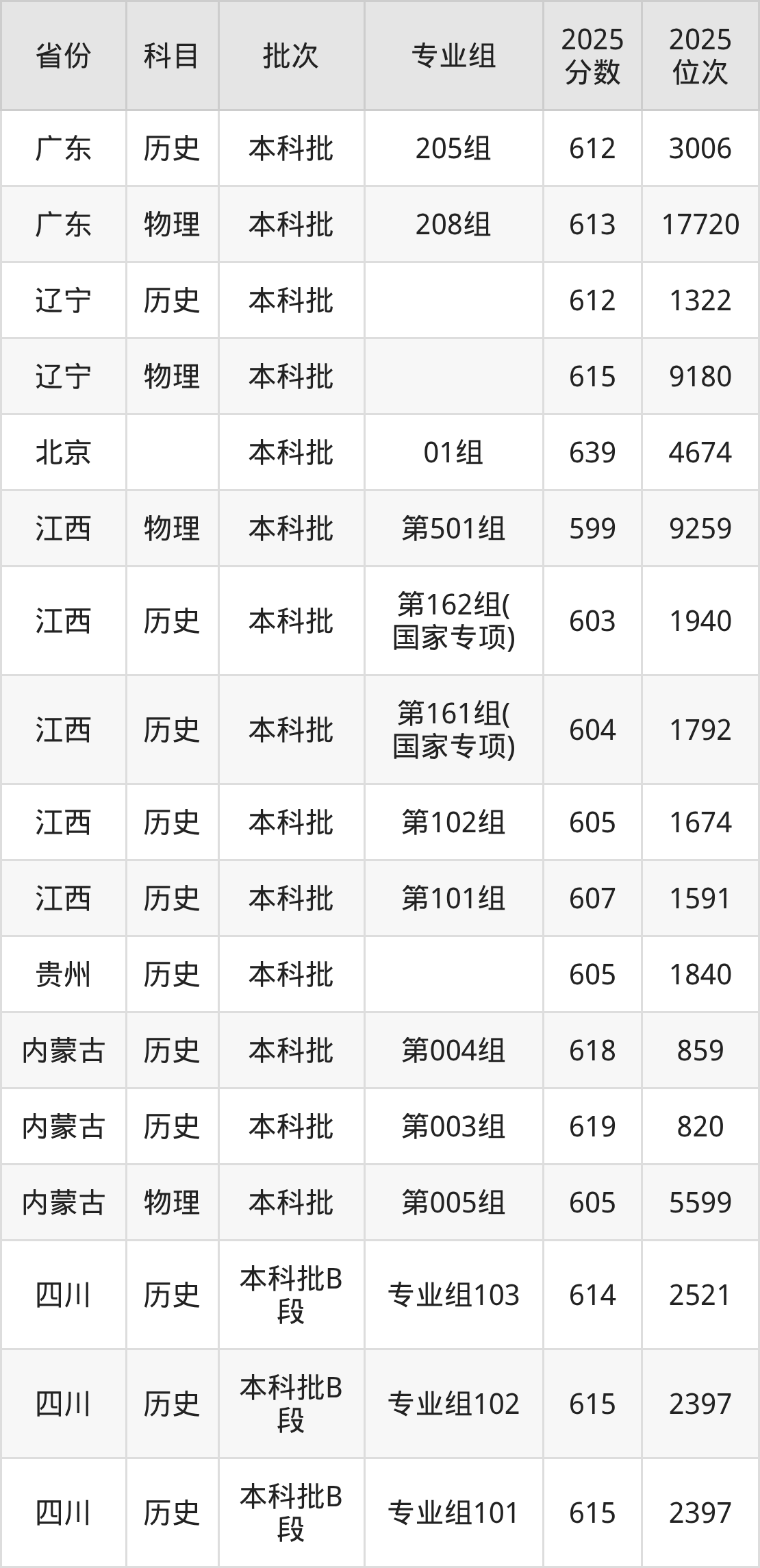 2025年投档录取最低分为615分,录取最低位次为9180名。