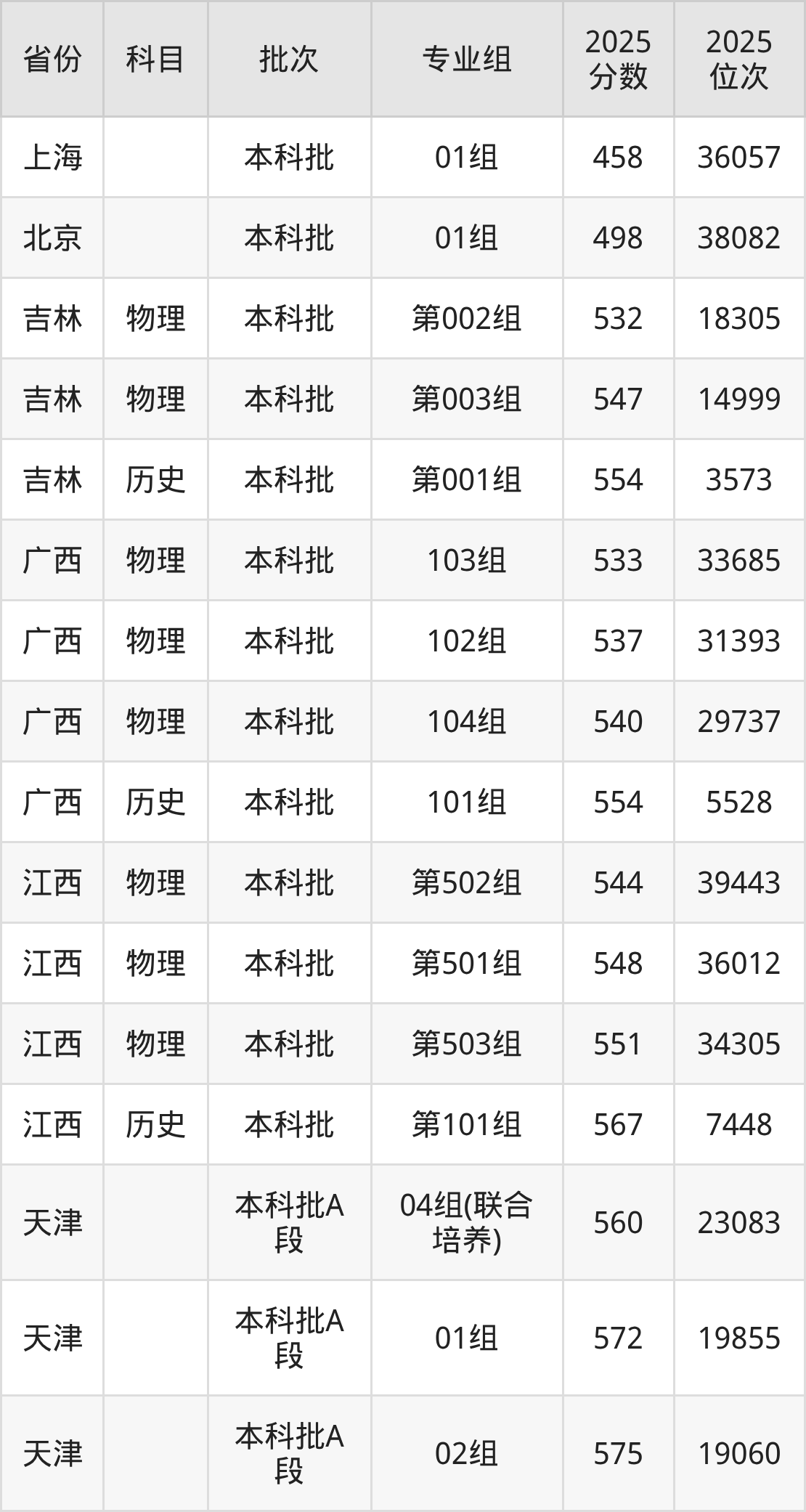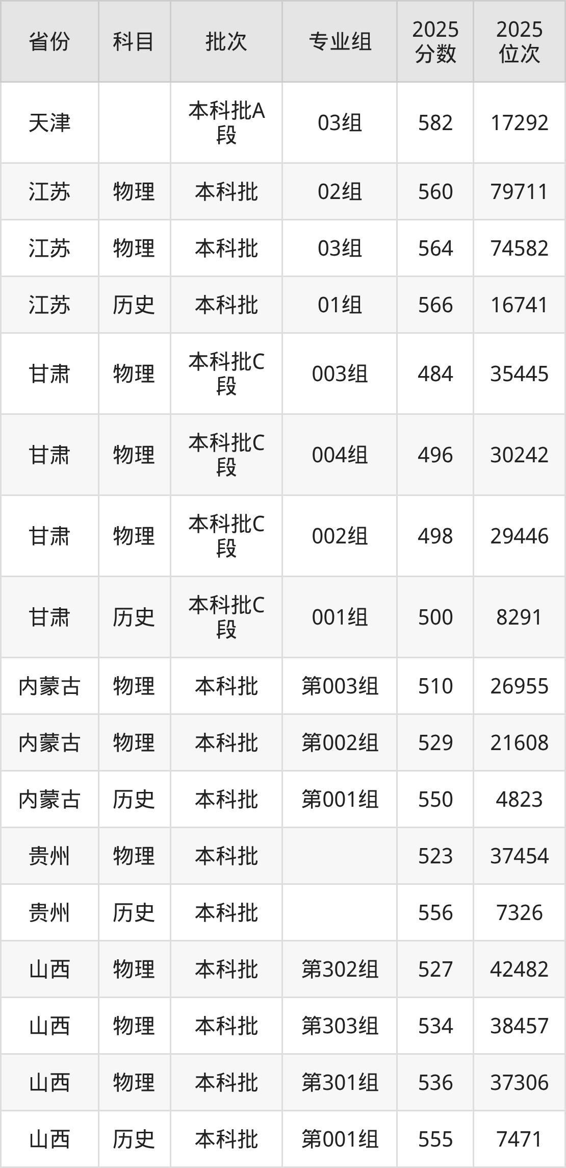 2025年投档录取最低分为559分,录取最低位次为5861名。
