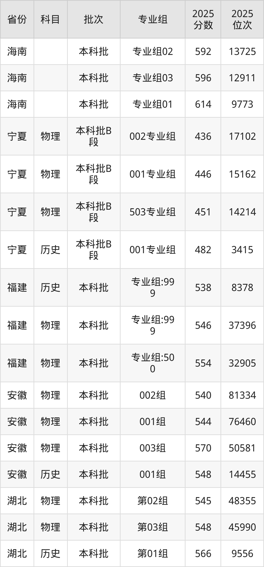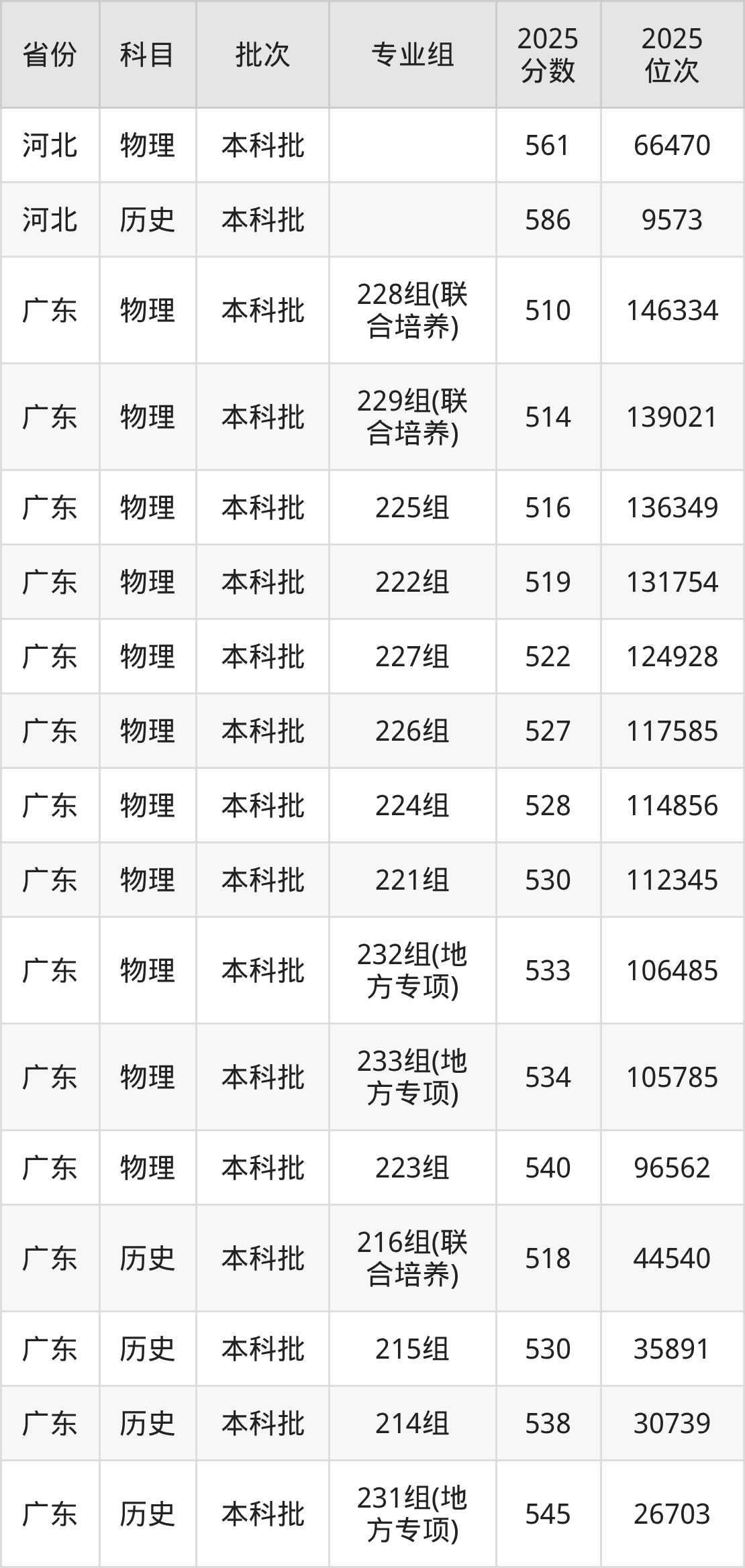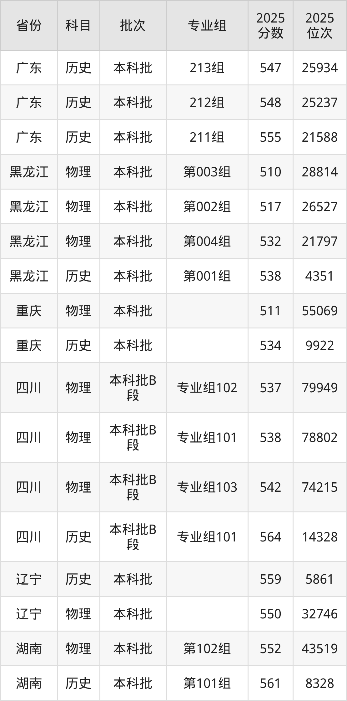 2025年投档录取最低分为550分,录取最低位次为32746名。
