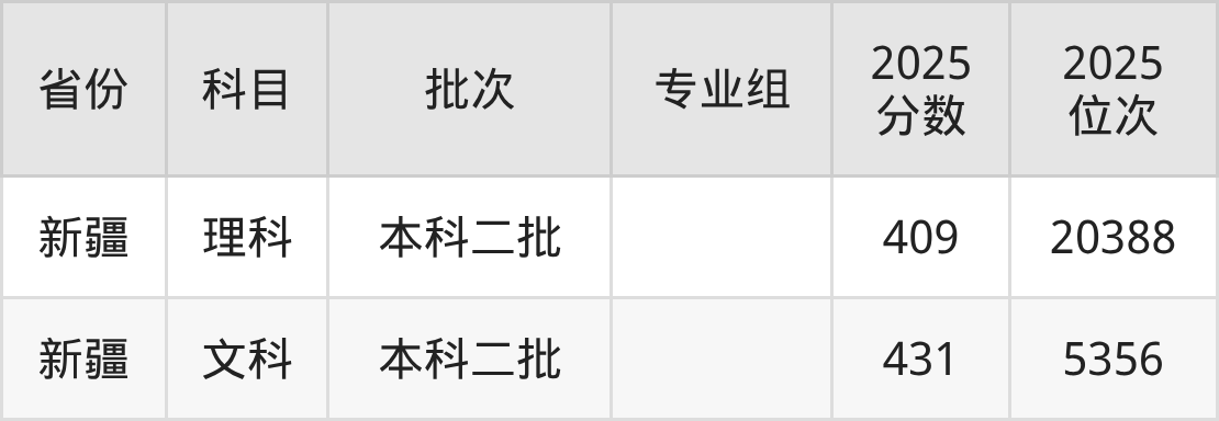2025年投档录取最低分为409分,录取最低位次为20388名。