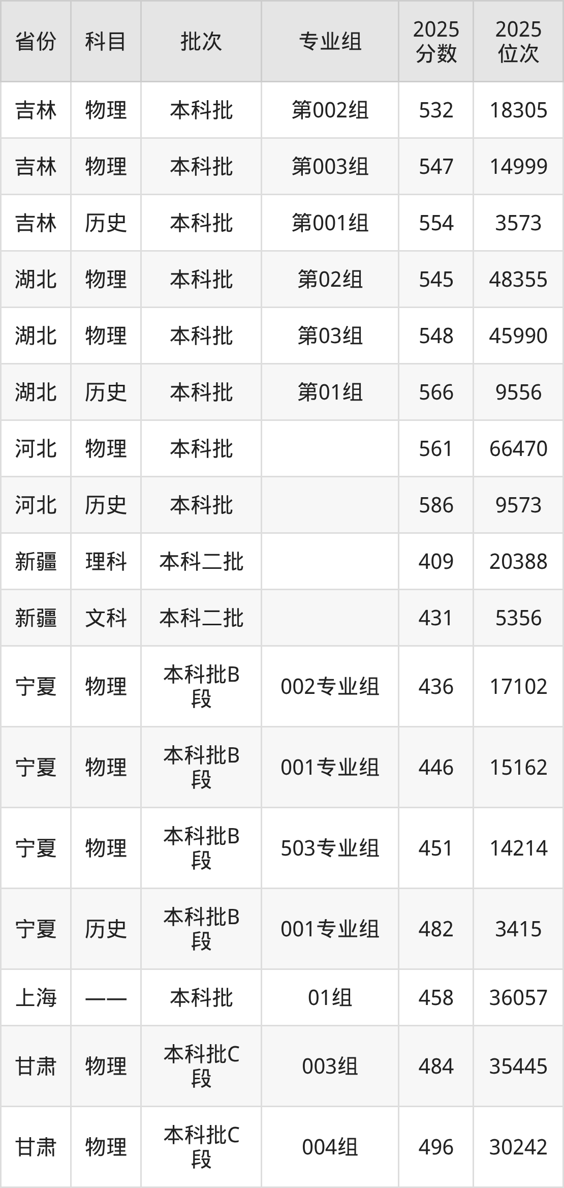 普通类本科物理类最低523分,本科历史类最低556分