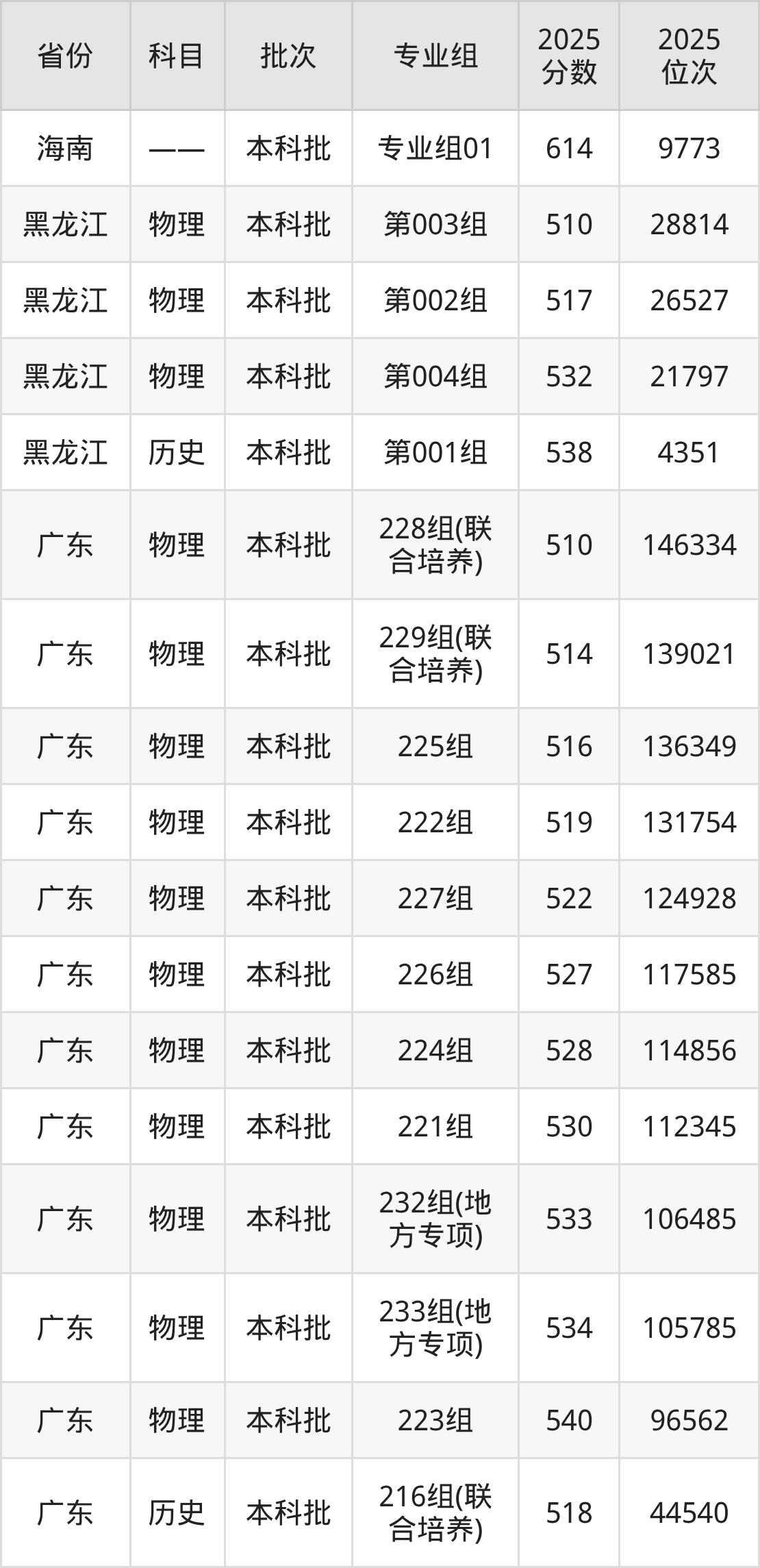 广东金融学院001组:2025年投档录取最低分为548分,录取最低位次为14455名。