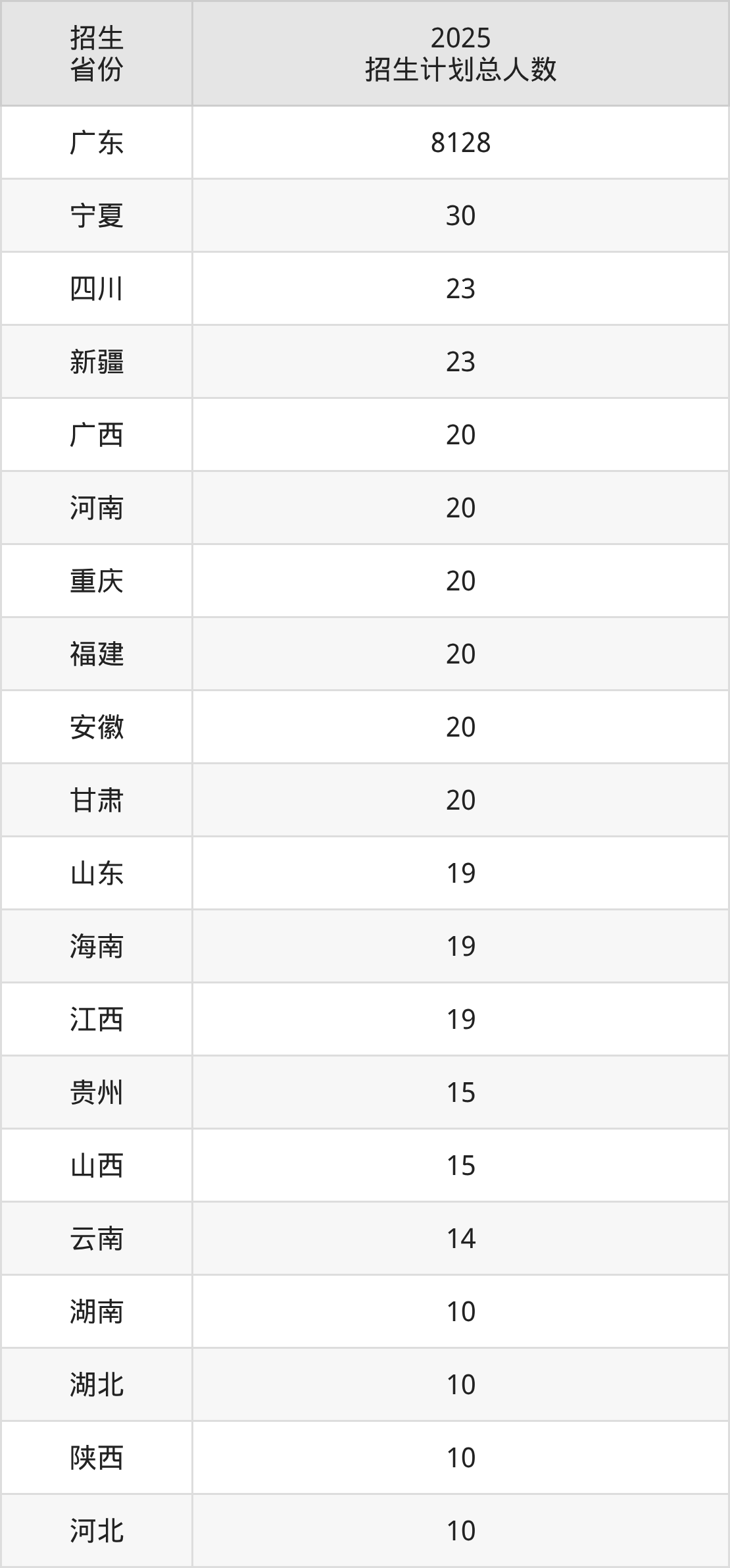 2025年广东金融学院面向全国29个省市开展本科招生;招生专业共50个,招生人数共8520人。2025年在广东省招生计划总人数是8128人,其中,广东金融学院在广东省招生人数最多的是计算机科学与技术。广东金融学院在各省具体招生人数情况如下表。