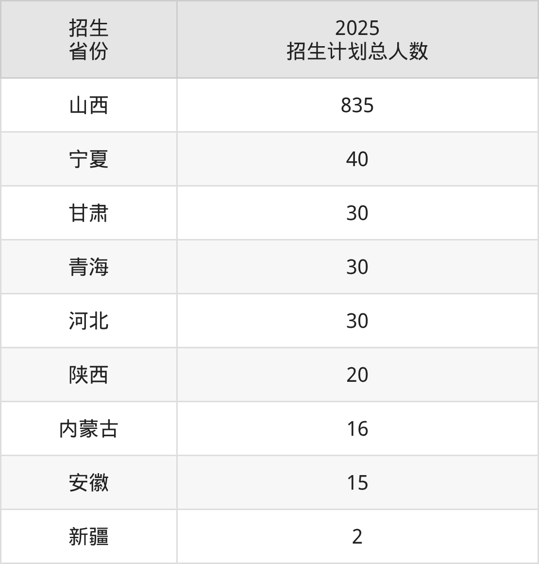 2025年运城师范高等专科学校面向全国9个省市开展专科招生;招生专业共14个,招生人数共1018人。2025年在山西省招生计划总人数是835人,其中,运城师范高等专科学校在山西省招生人数最多的是小学语文教育。运城师范高等专科学校在各省具体招生人数情况如下表。