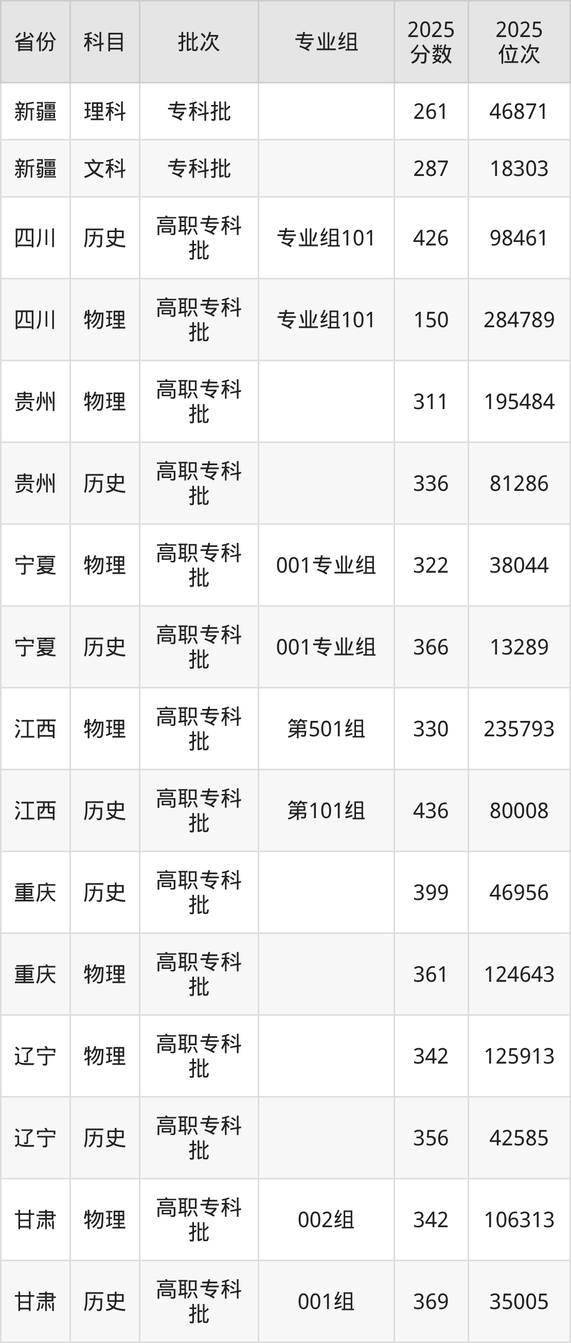 普通类专科物理类最低342分,专科历史类最低356分