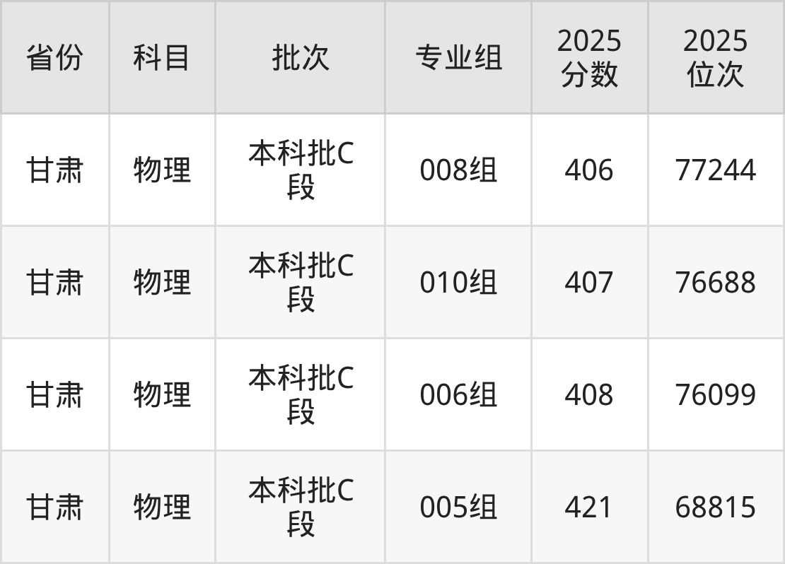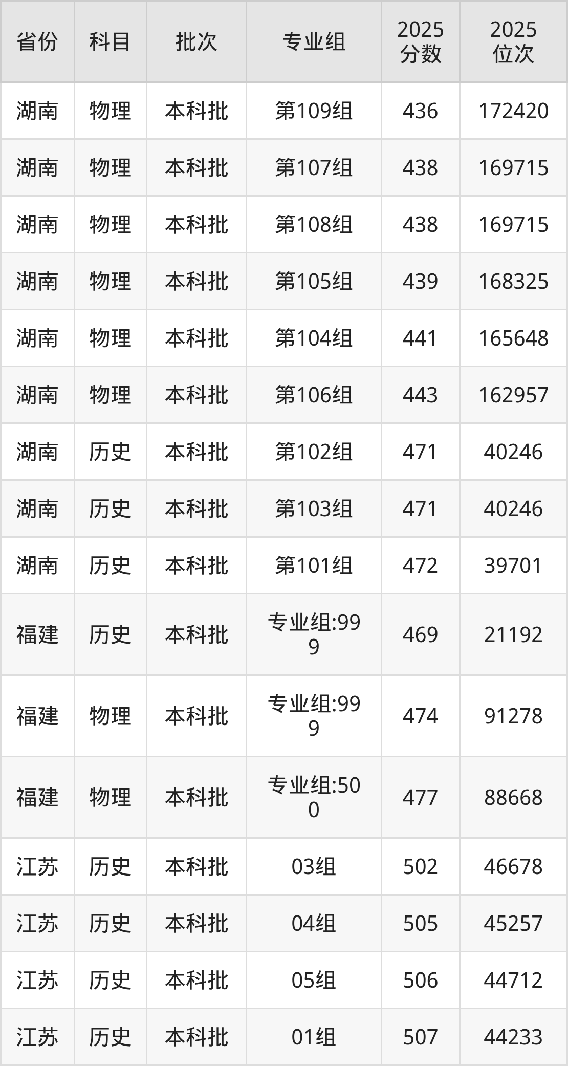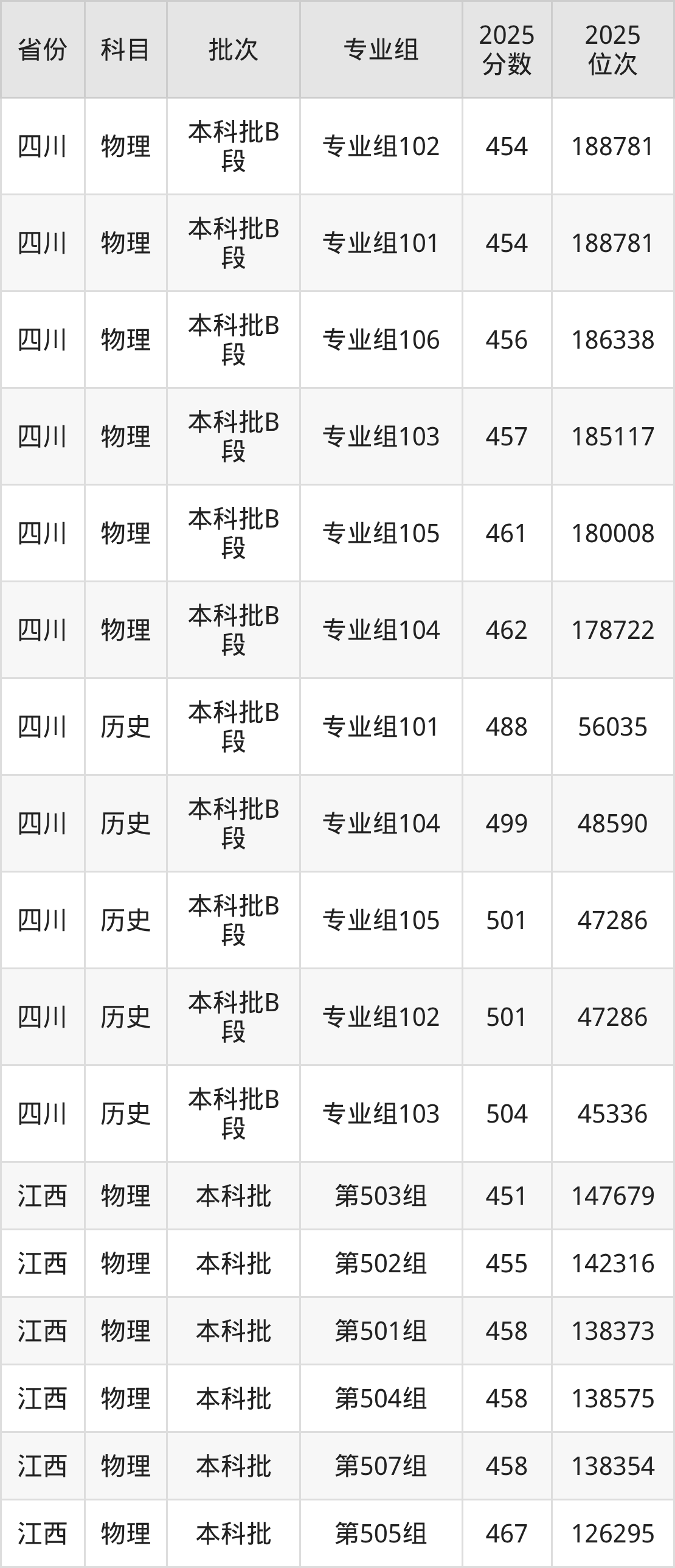 2025年在本科理科进行招生,各专业组分数线详情如下: