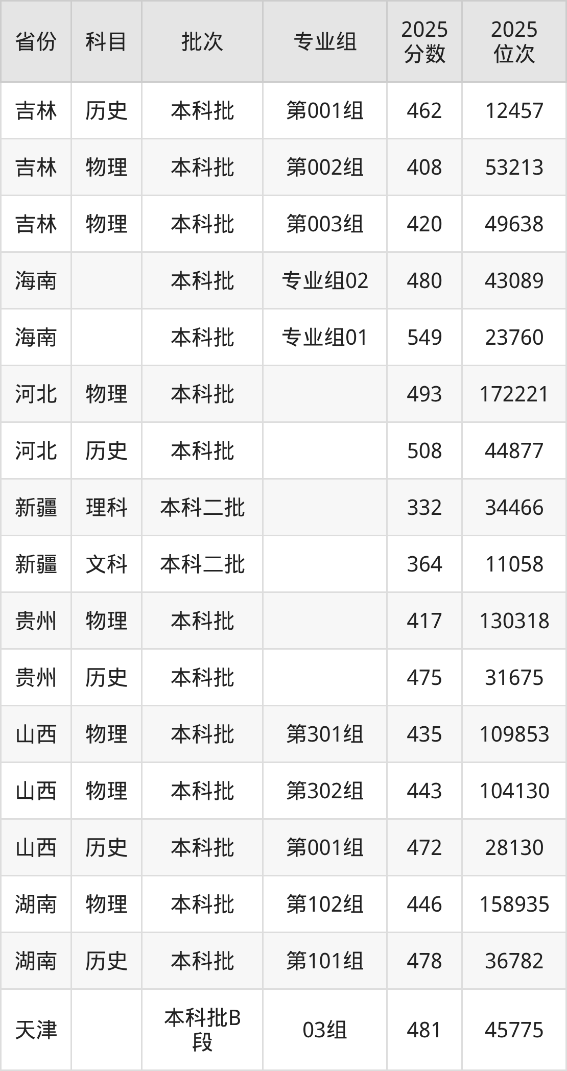 普通类本科物理类最低408分,本科历史类最低462分