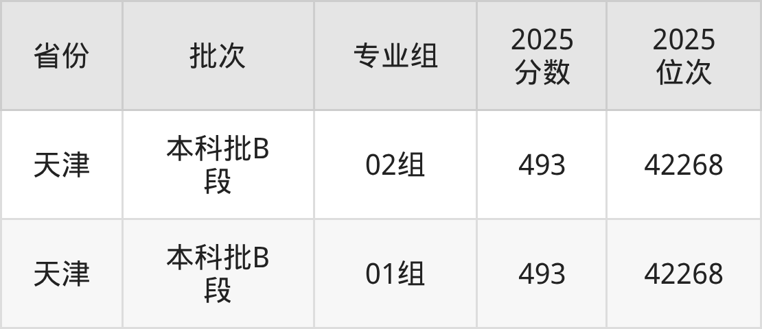 工程造价:2025年投档录取最低分为493分。