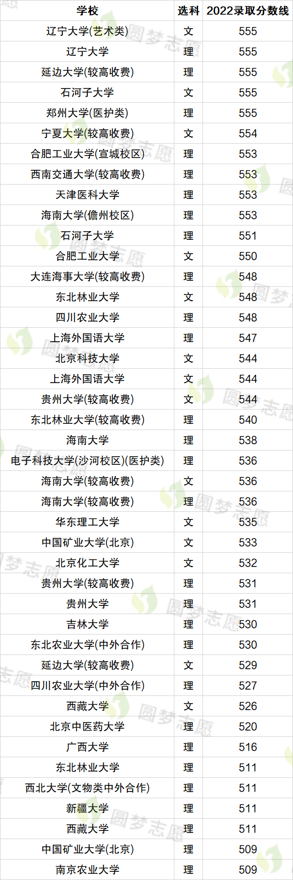 再比如云南省,2022年理科550分可以上211大学,而文科550分就没有办法上211大,因为2022年云南文科分数最低的211大学是西藏大学579分。