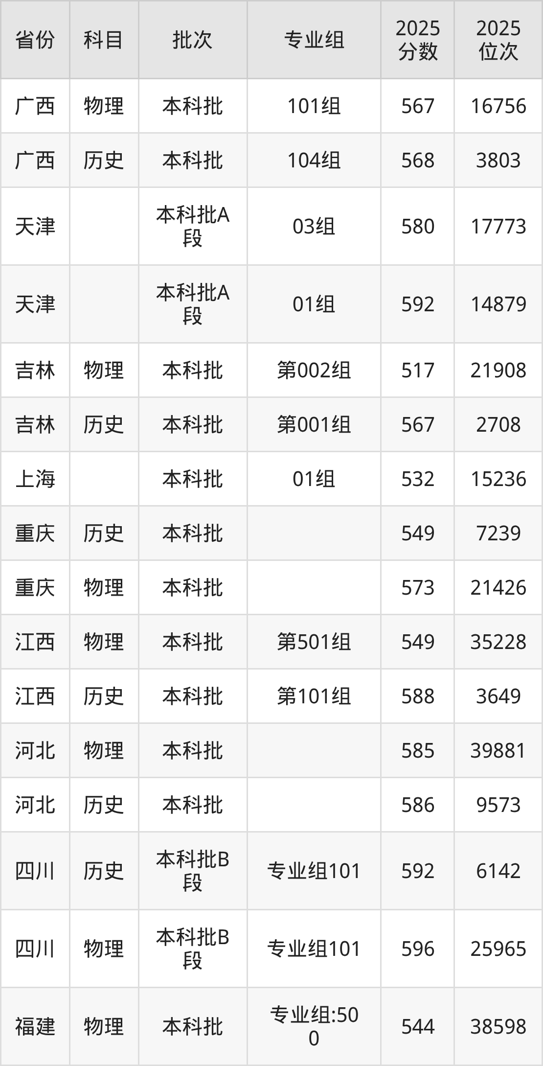 2025年投档录取最低分为565分,录取最低位次为17126名。
