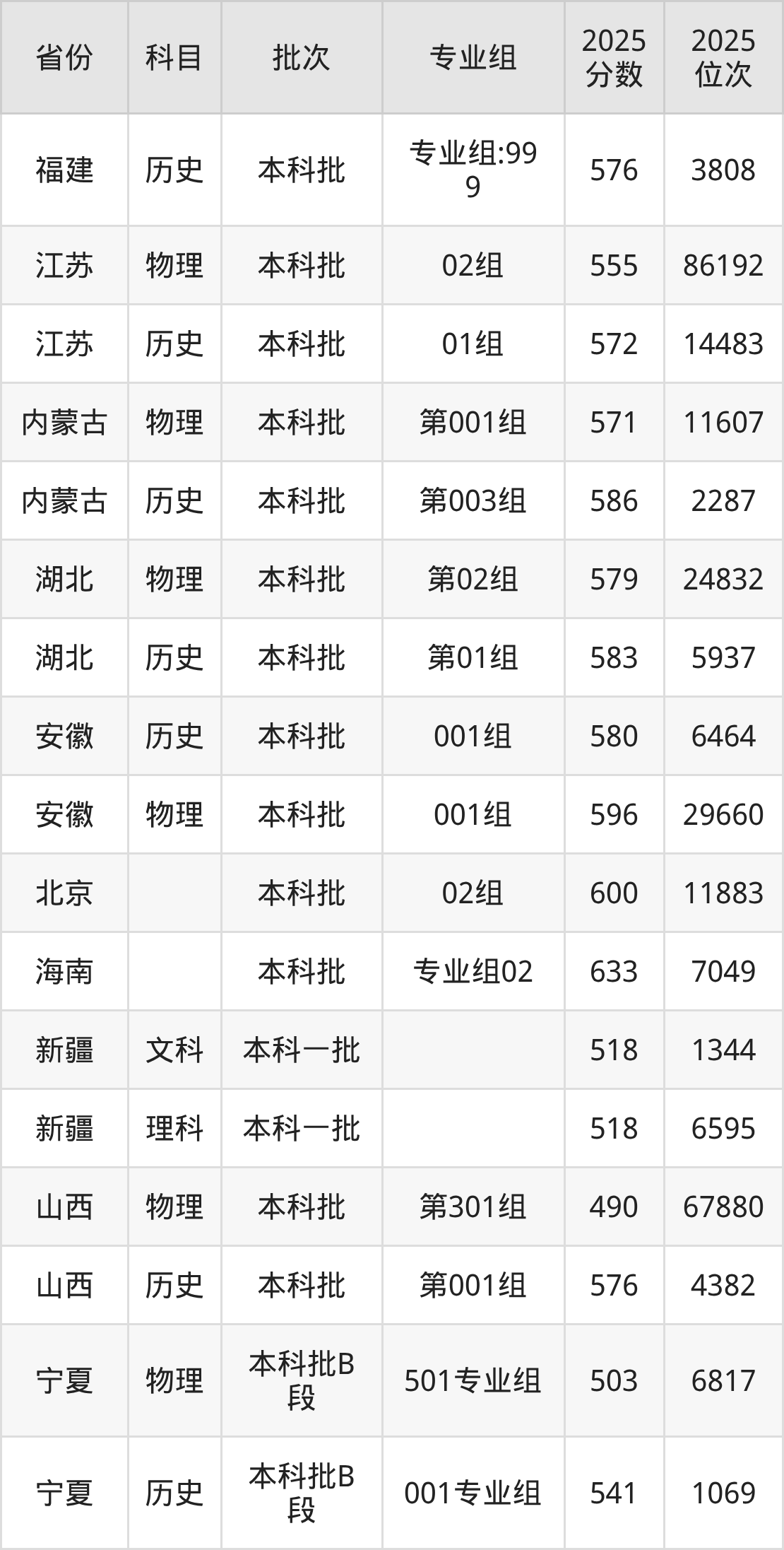 普通类本科历史类最低548分,本科物理类最低576分