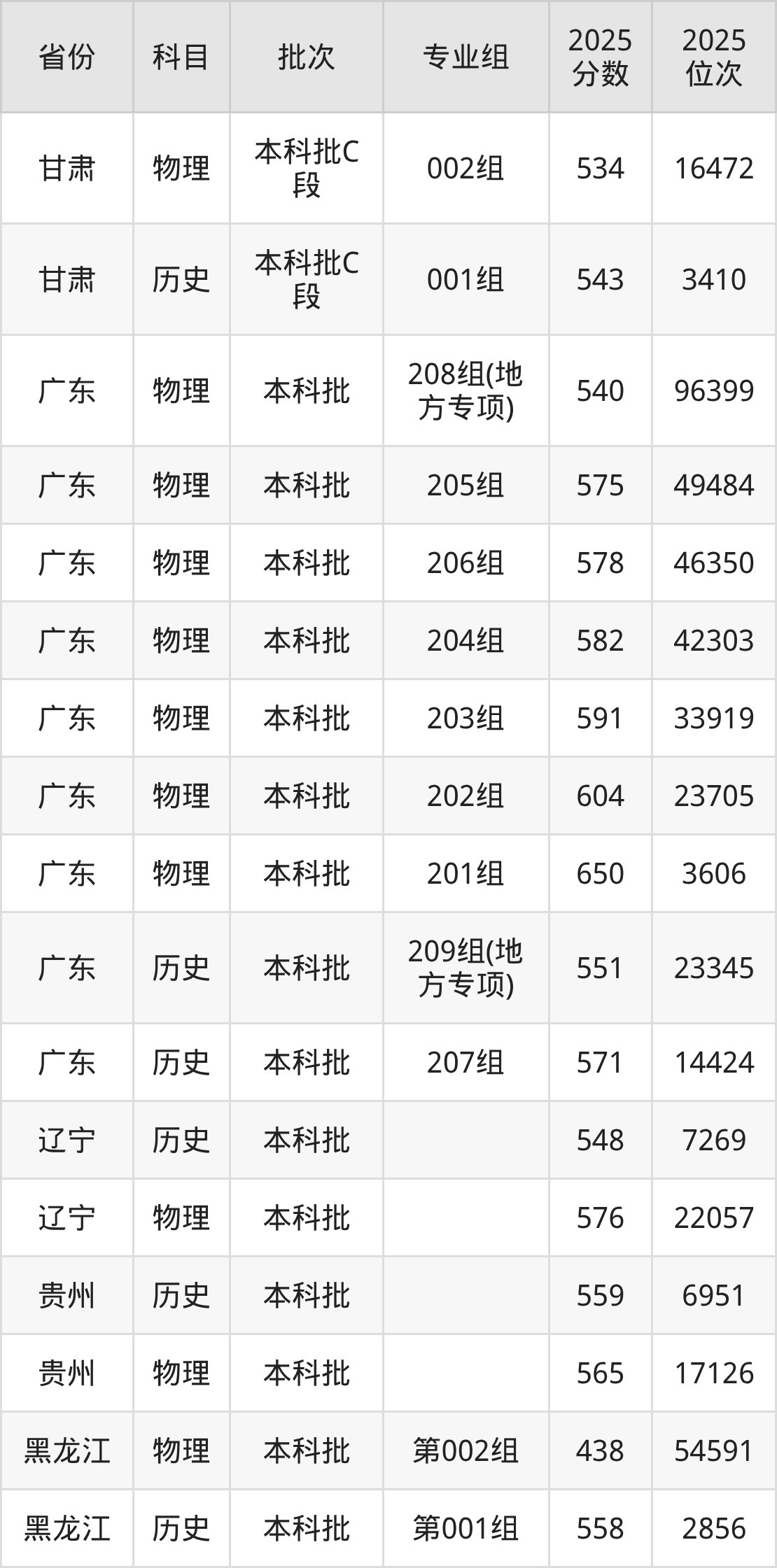 普通类本科历史类最低541分,本科物理类最低503分