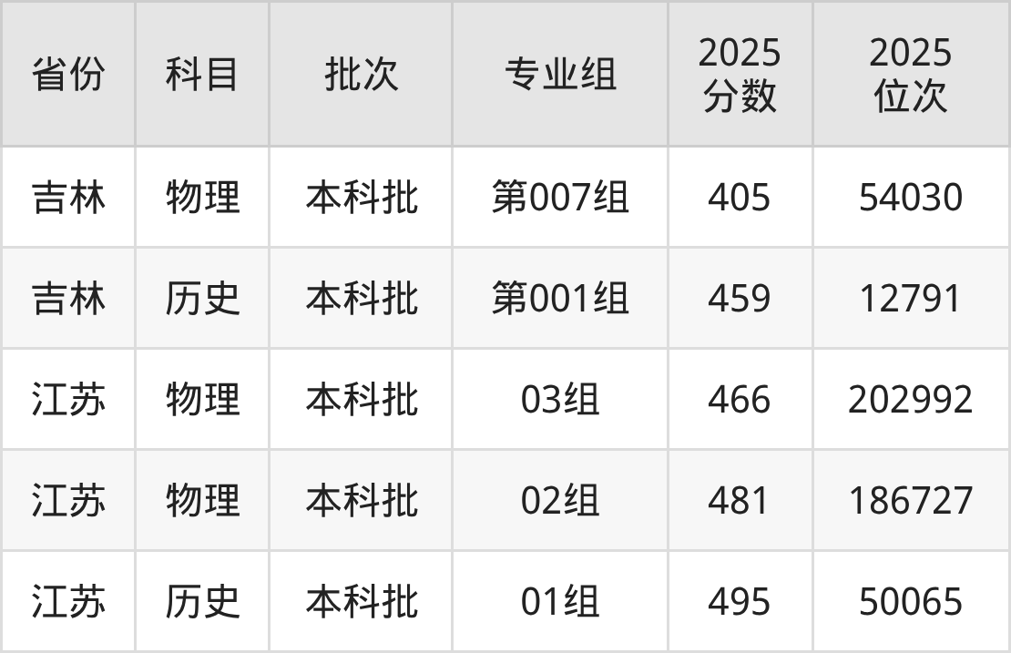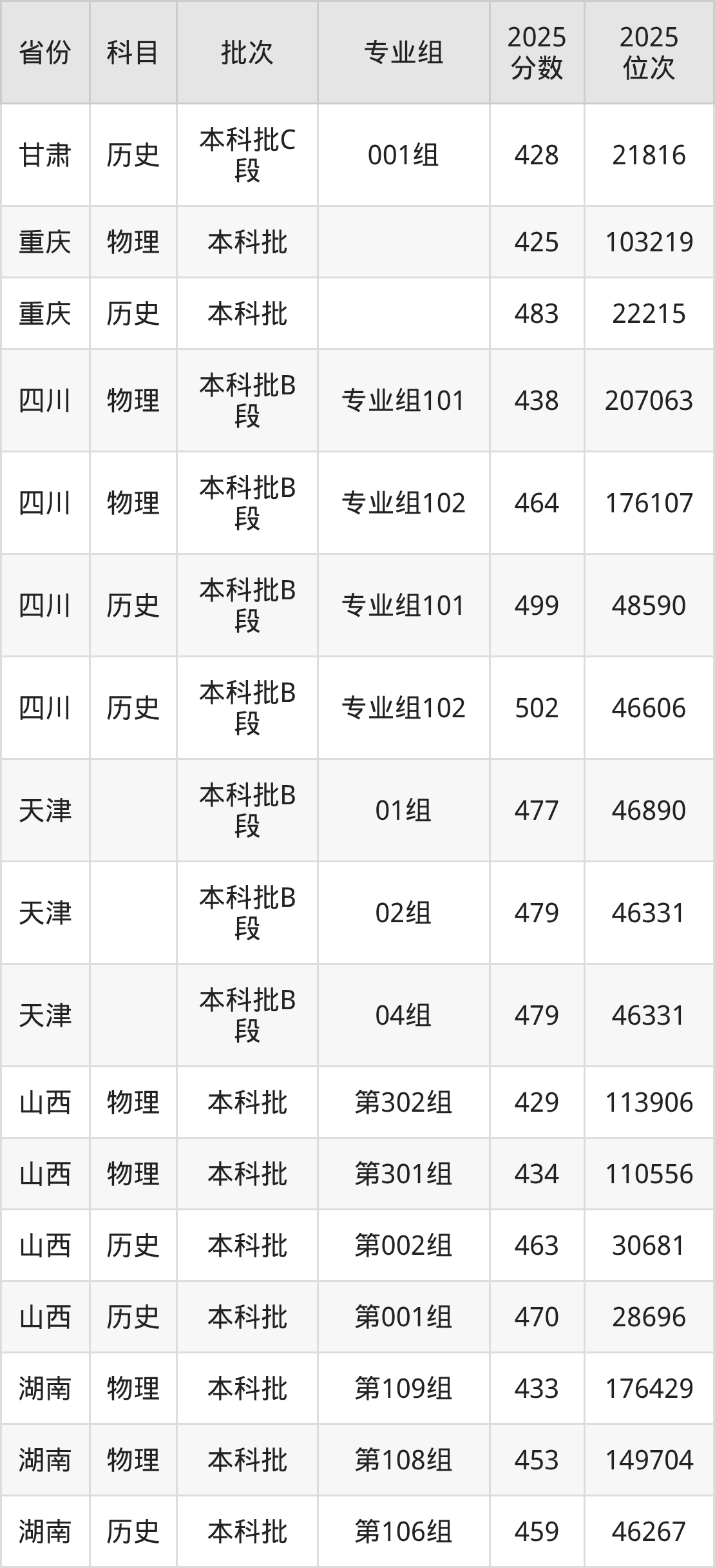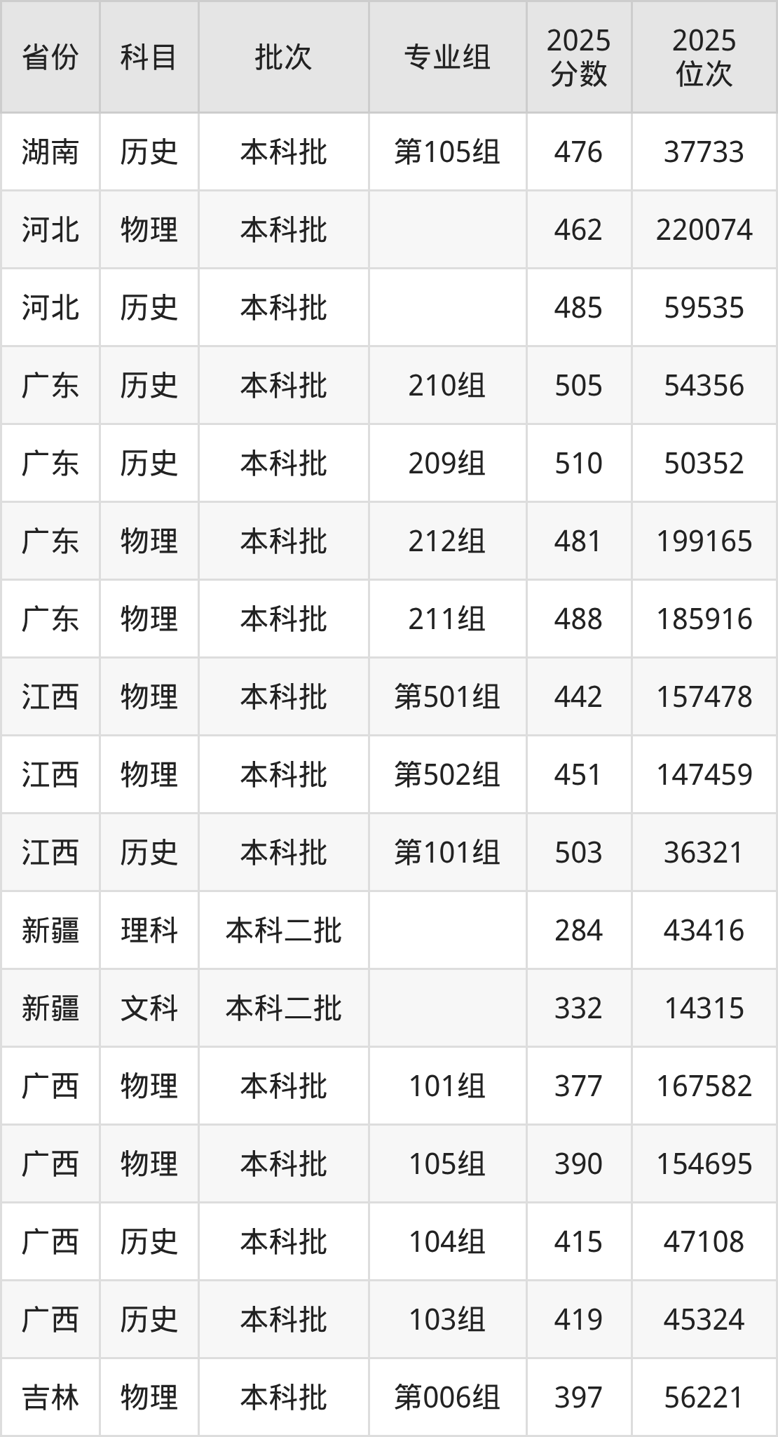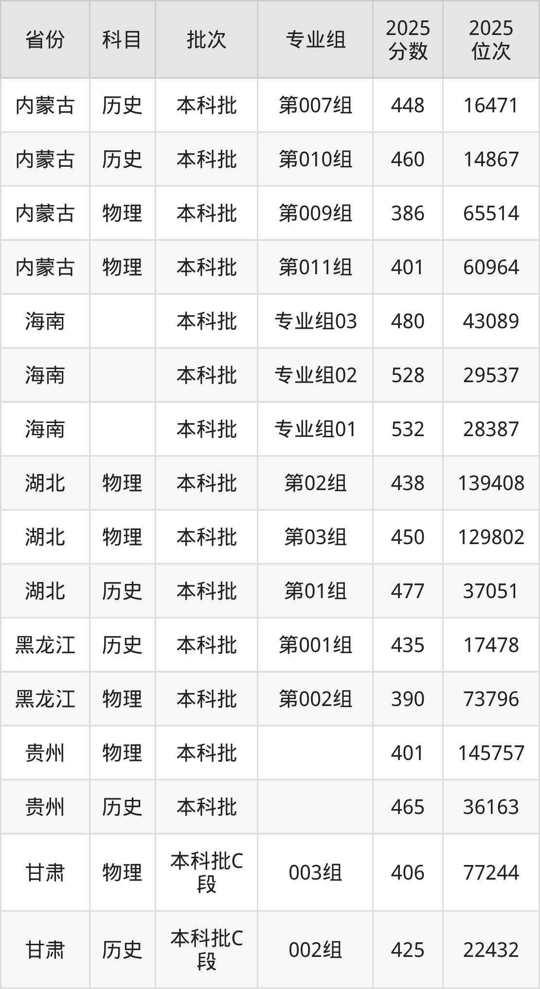 2025年投档录取最低分为465分,录取最低位次为36163名。
