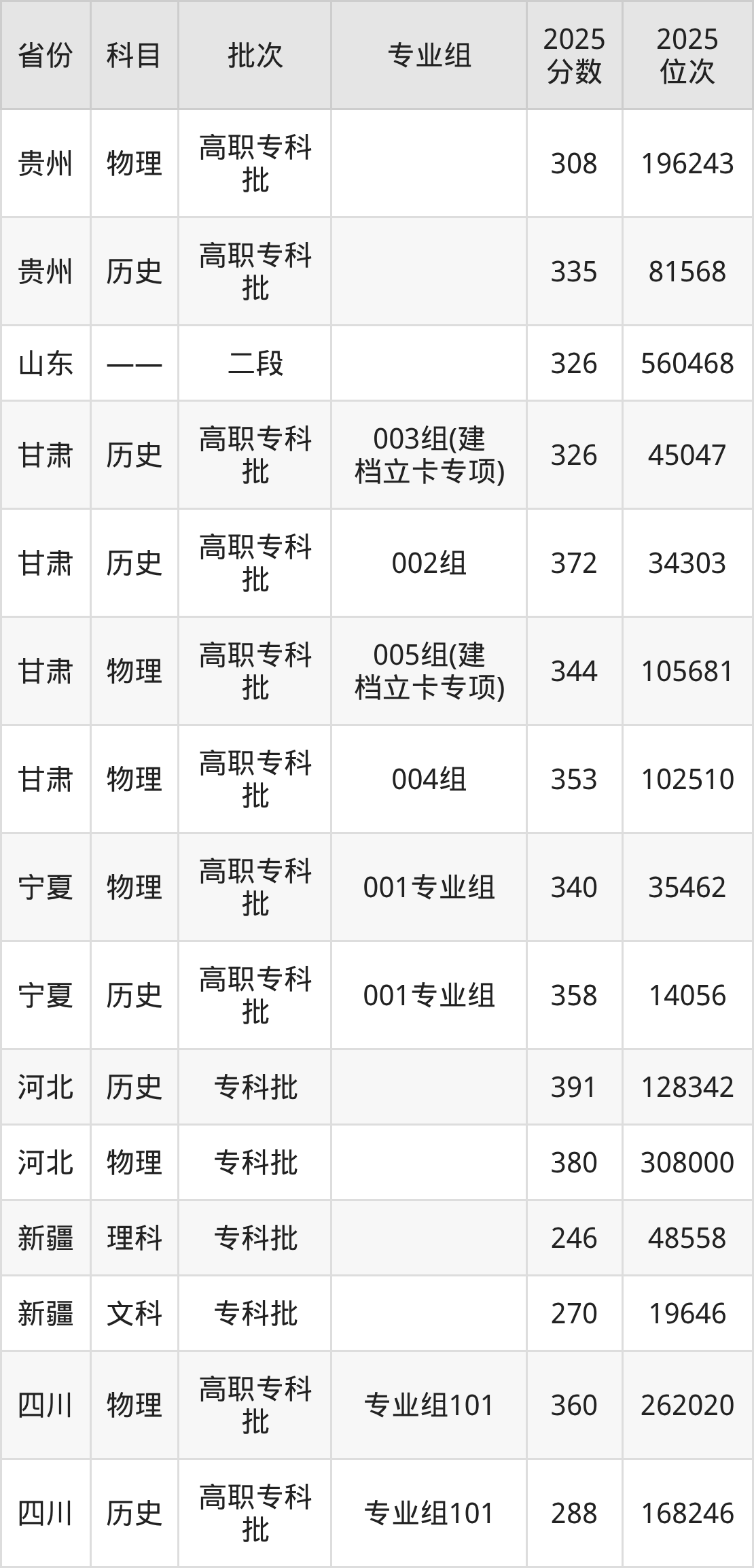 下面是2025年兰州职业技术学院全国录取分数线一览表,请查阅。