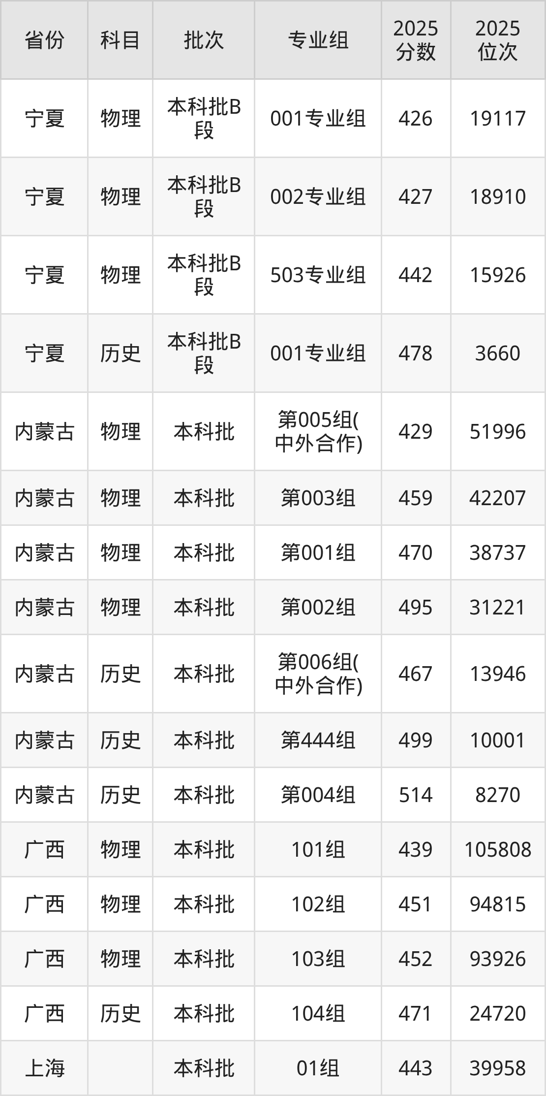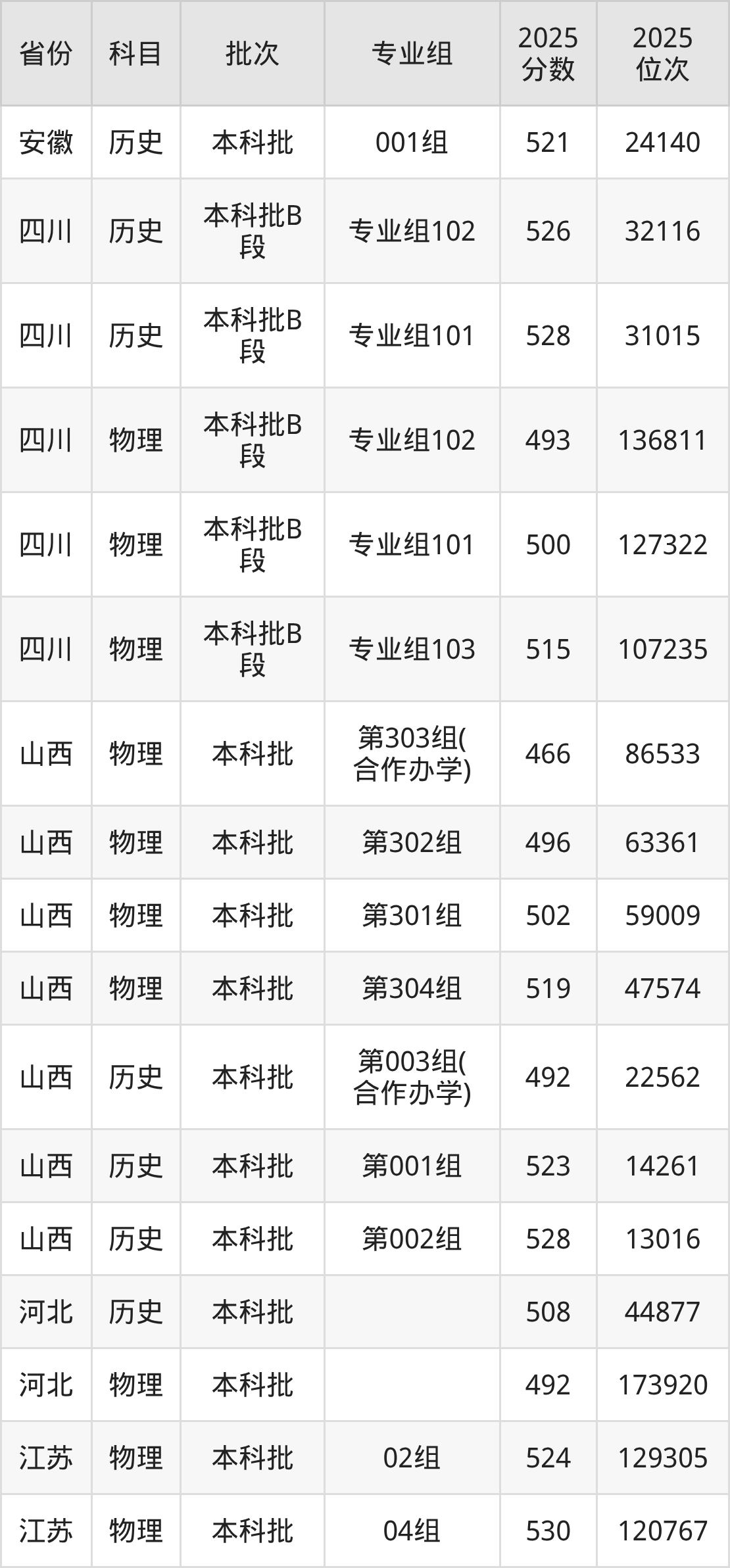 2025年投档录取最低分为503分,录取最低位次为17015名。