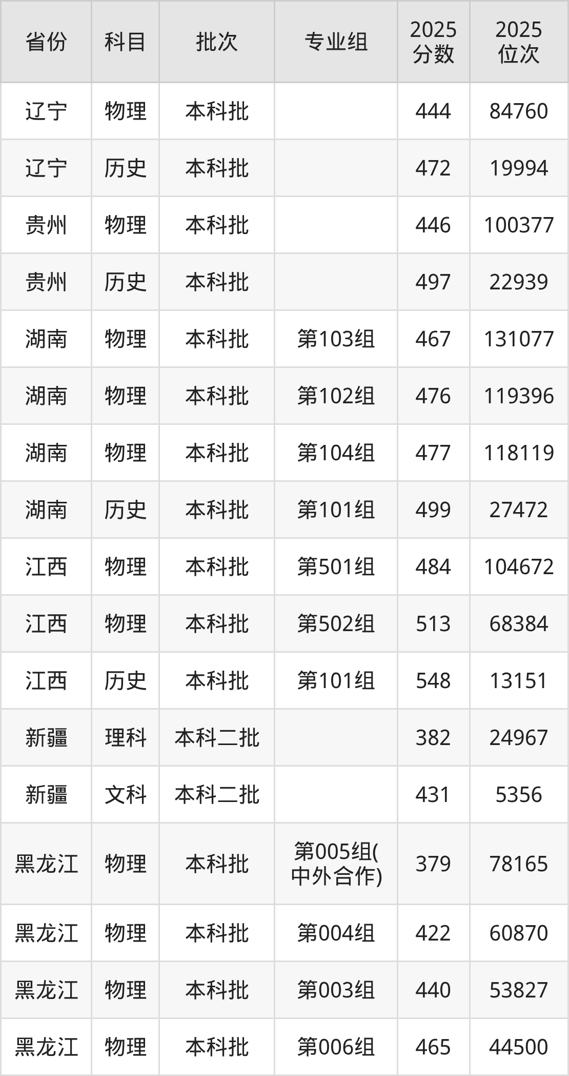 2025年投档录取最低分为382分,录取最低位次为24967名。