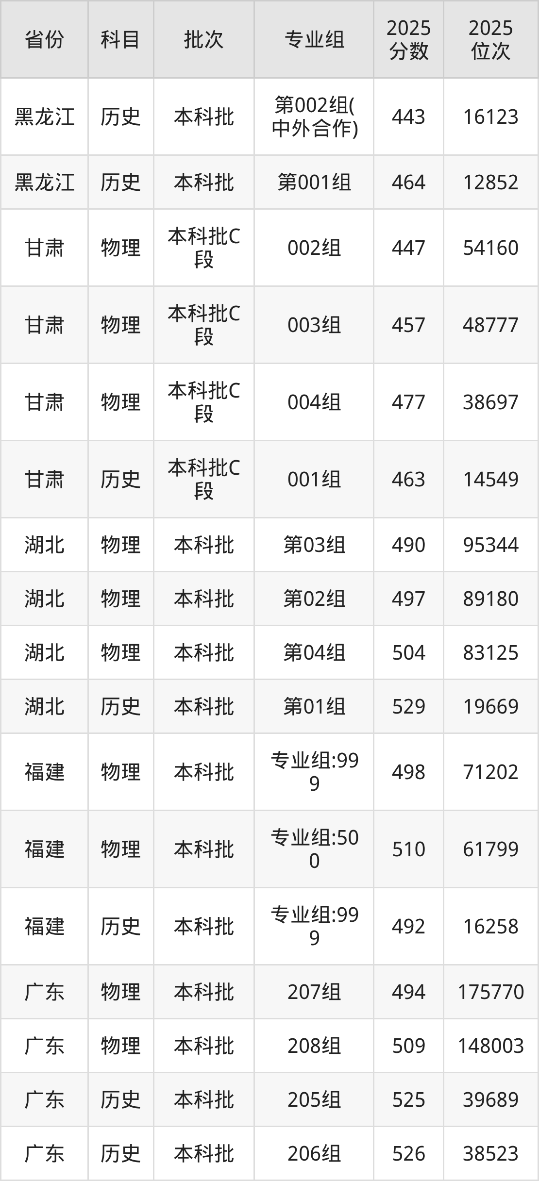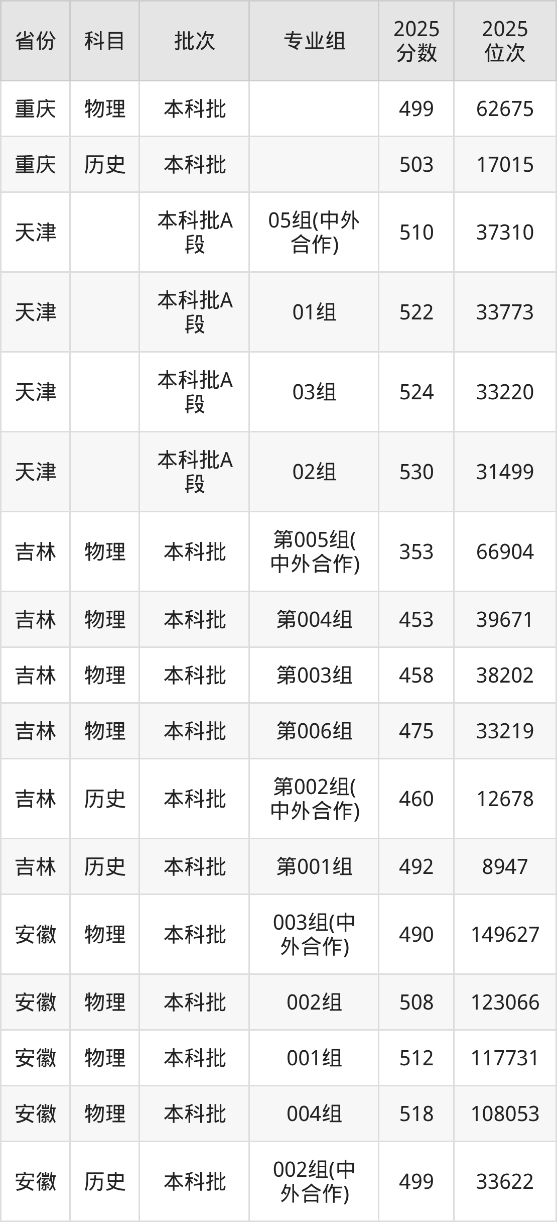 2025年投档录取最低分为499分,录取最低位次为62675名。