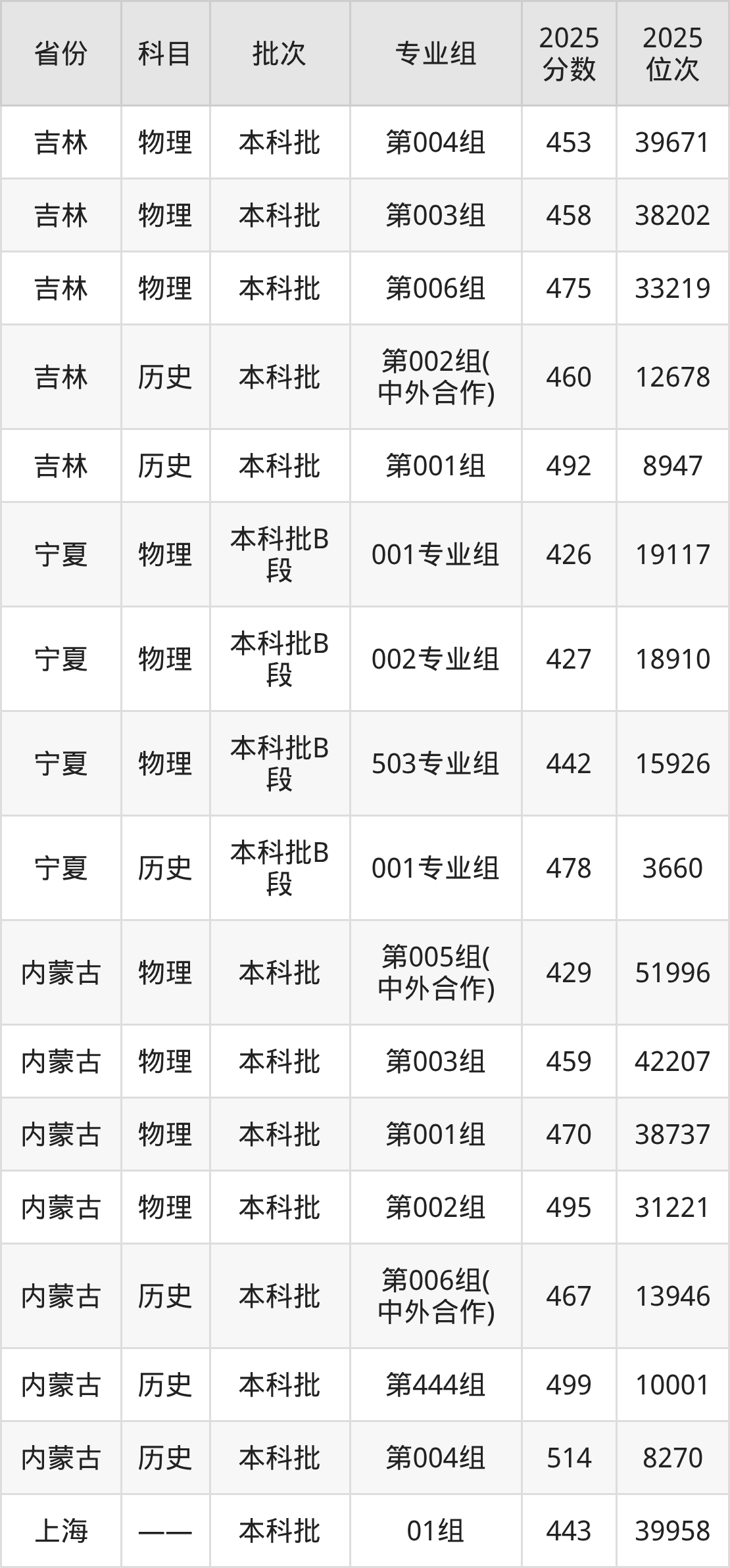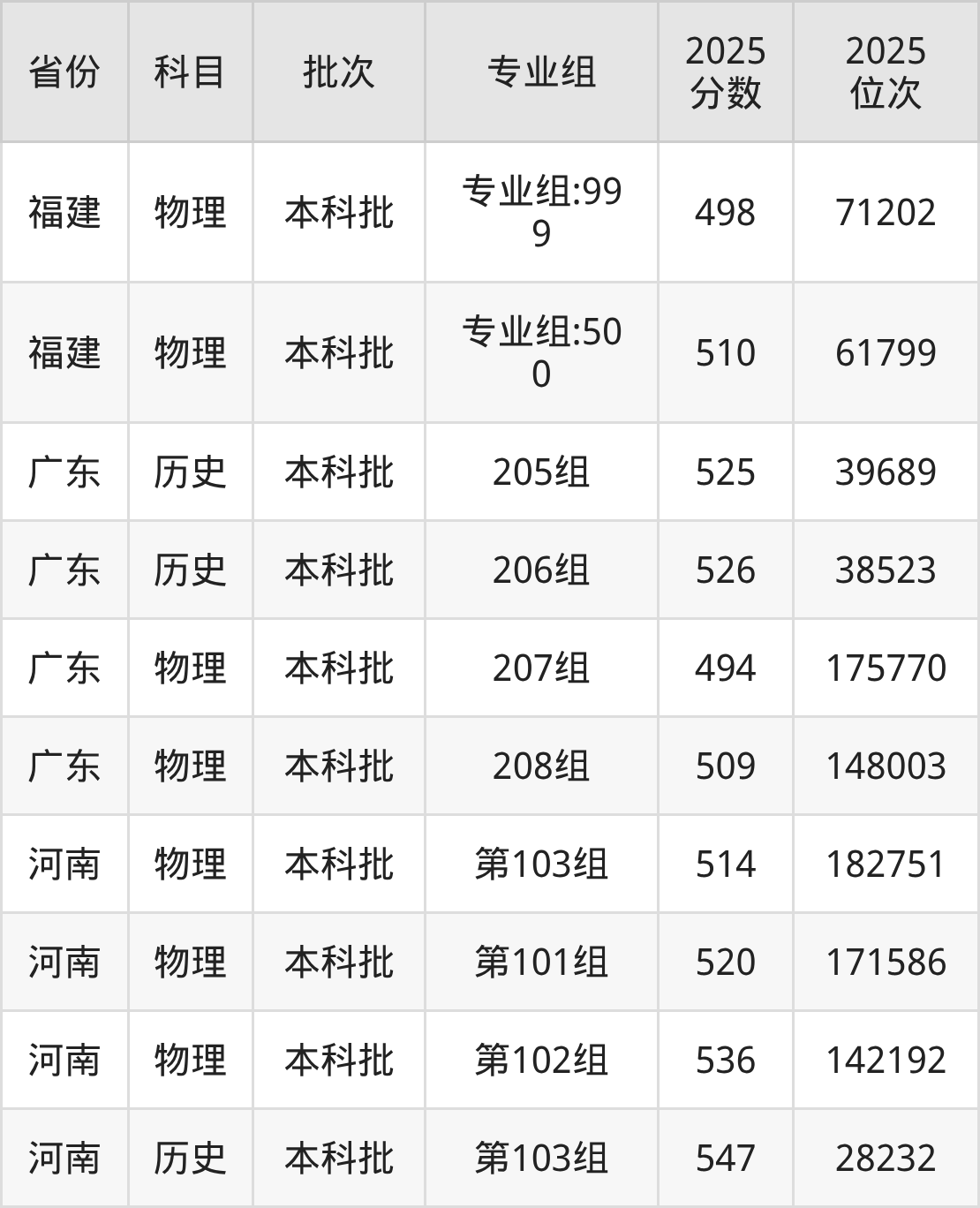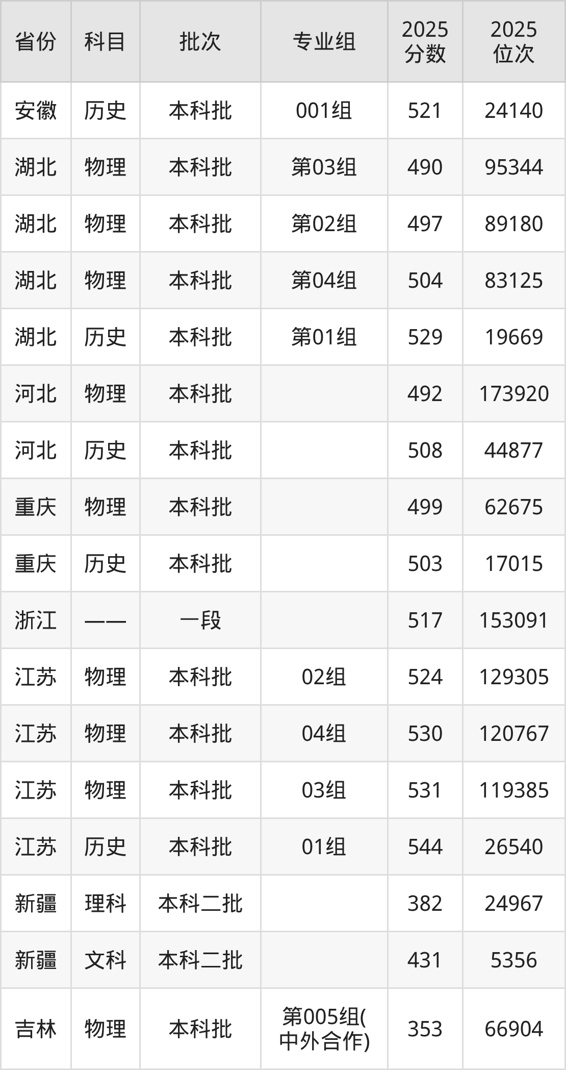 普通类本科物理类最低493分,本科历史类最低526分