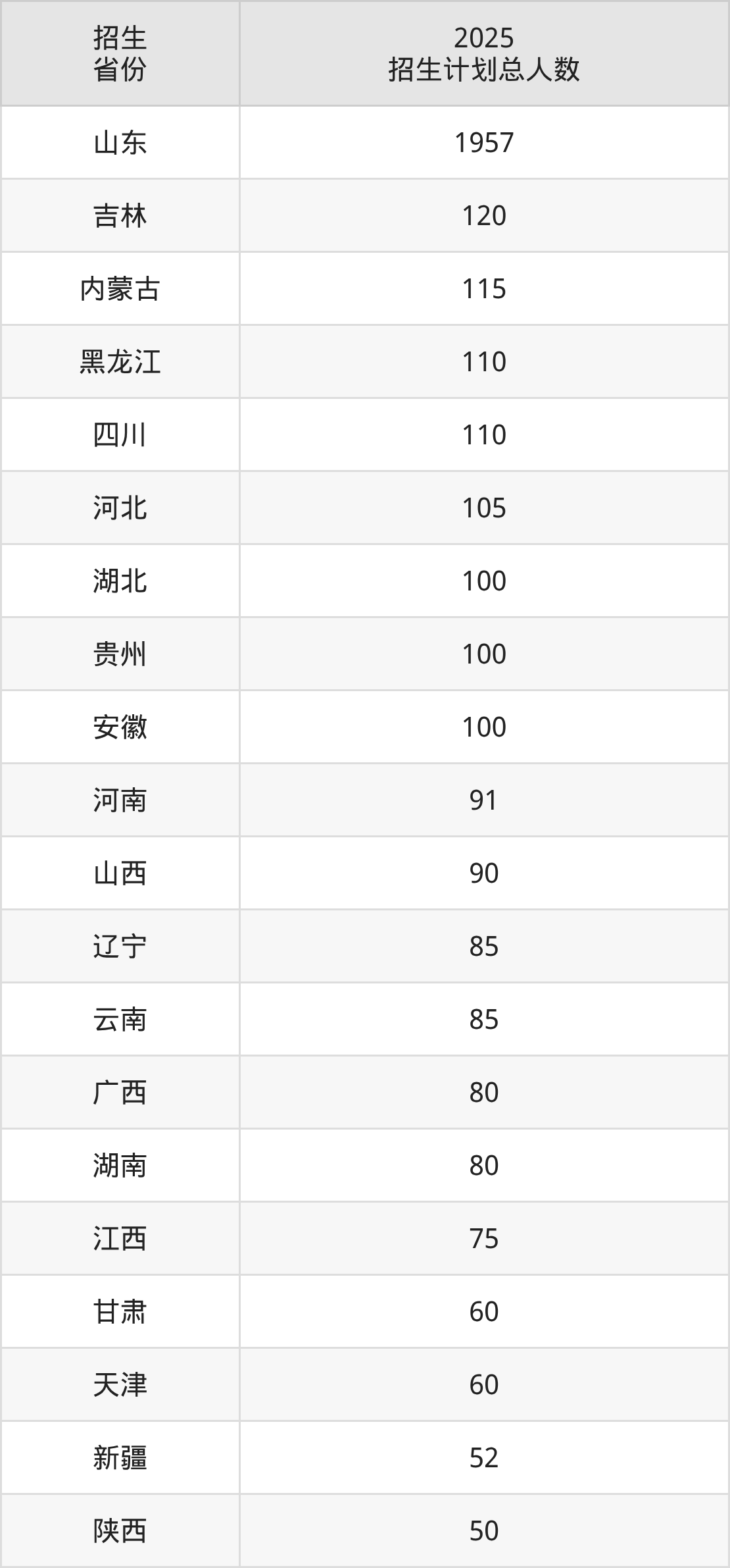2025年山东工商学院面向全国28个省市开展本科招生;招生专业共52个,招生人数共3856人。2025年在山东省招生计划总人数是1957人,其中,山东工商学院在山东省招生人数最多的是工商管理。山东工商学院在各省具体招生人数情况如下表。