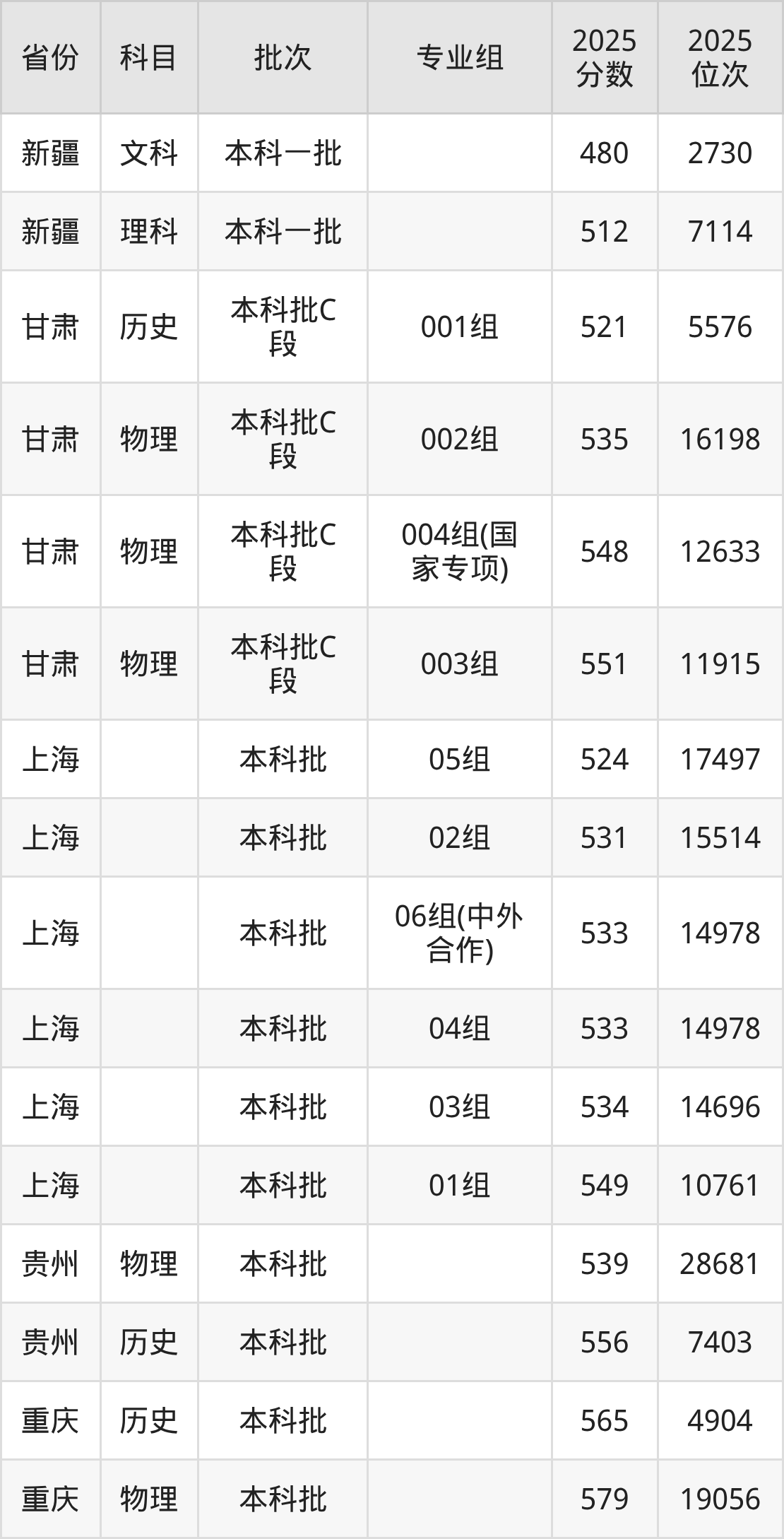 2025年上海理工大学全国录取分数线是480分到644分,录取最低在新疆文科、录取最高在海南(专业组01)。各省各专业组最低分具有差异,详情如下: