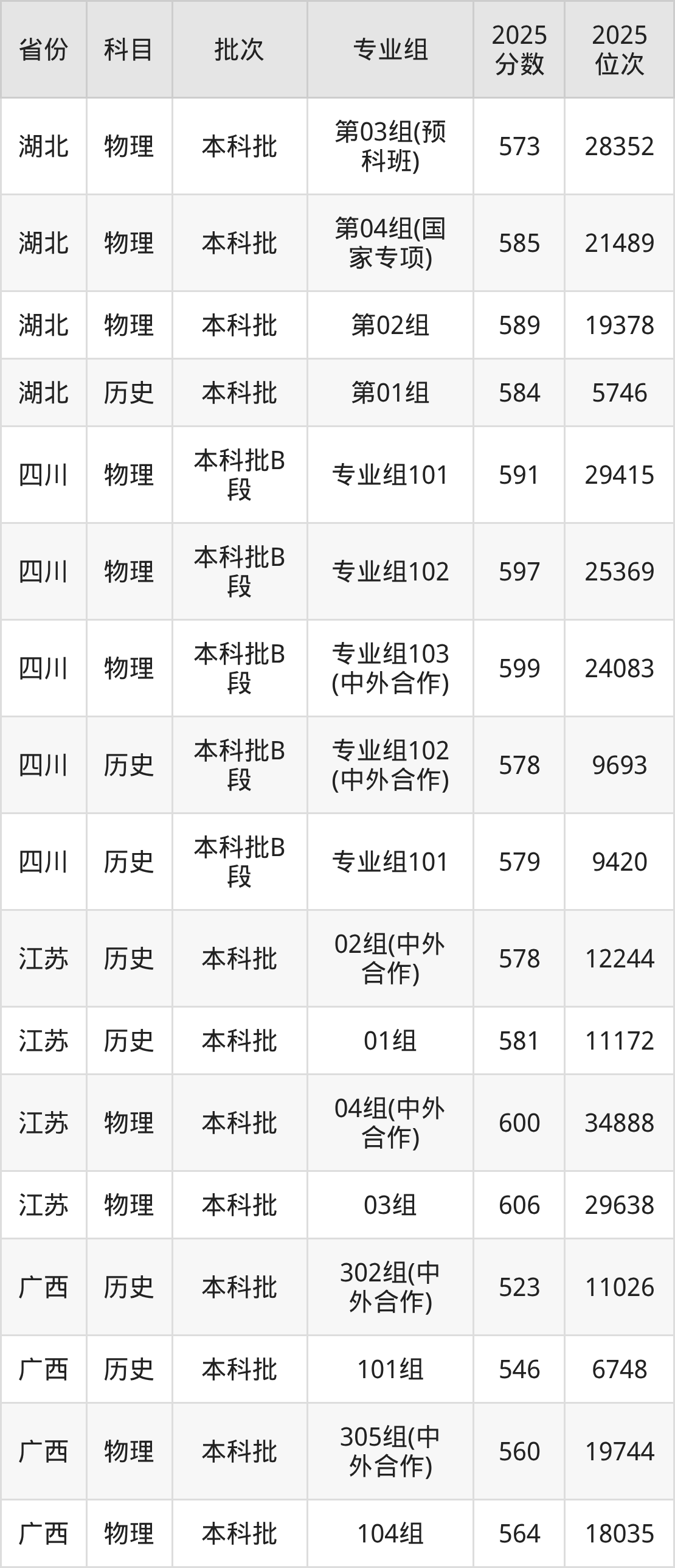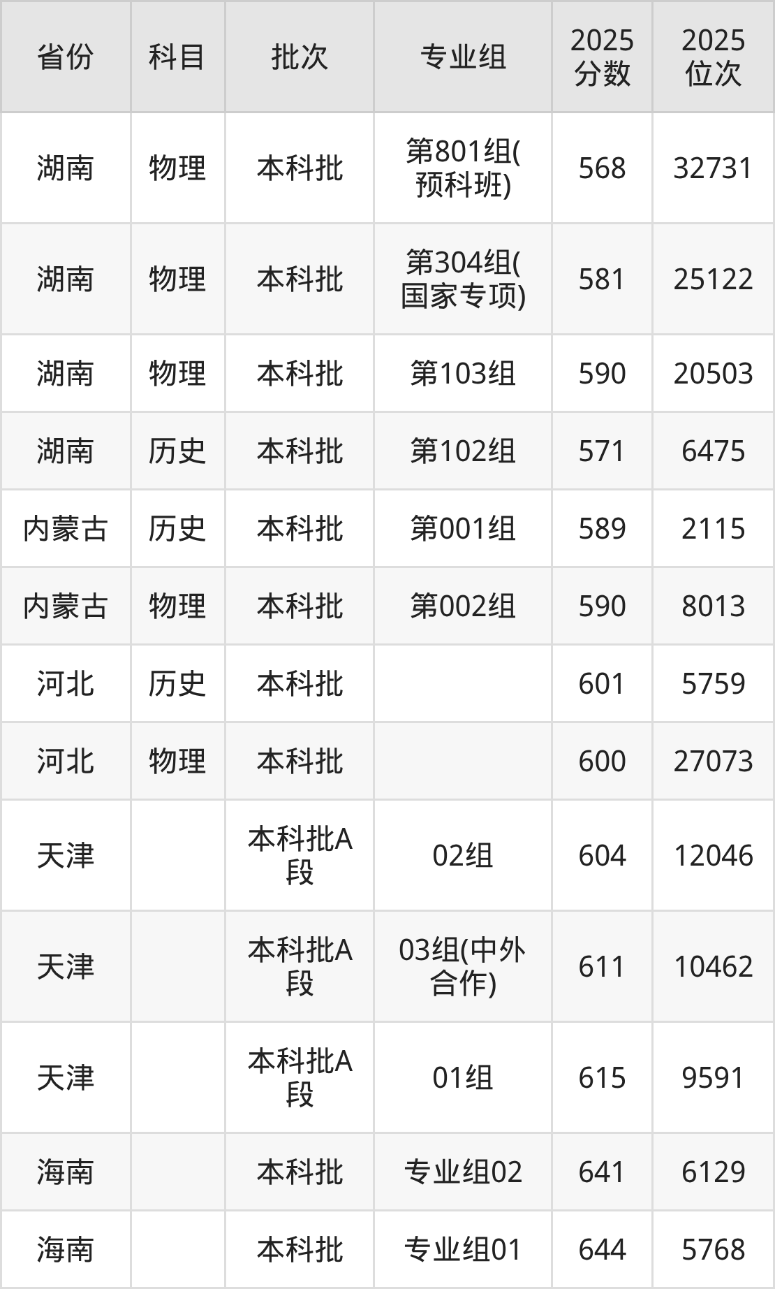 2025年投档录取最低分为579分,录取最低位次为19056名。
