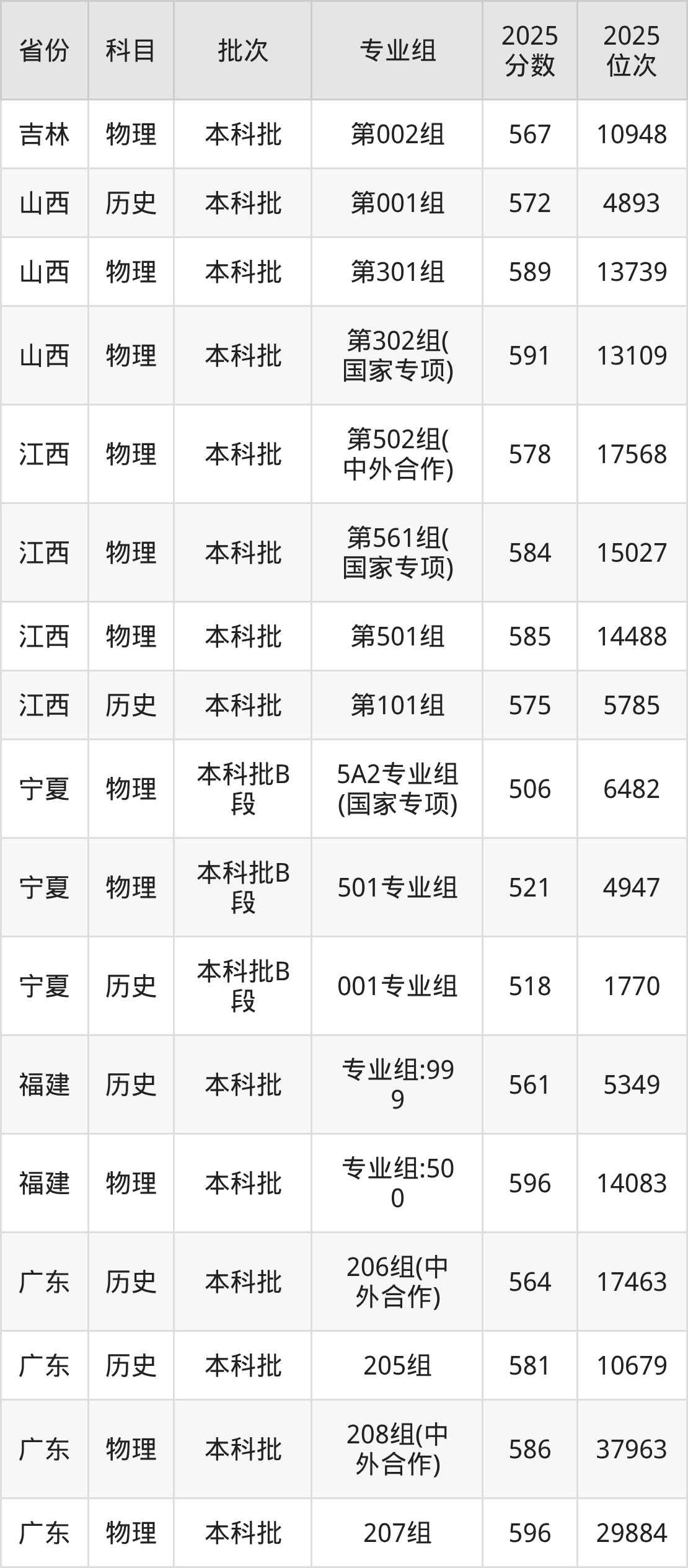 2025年投档录取最低分为556分,录取最低位次为7403名。