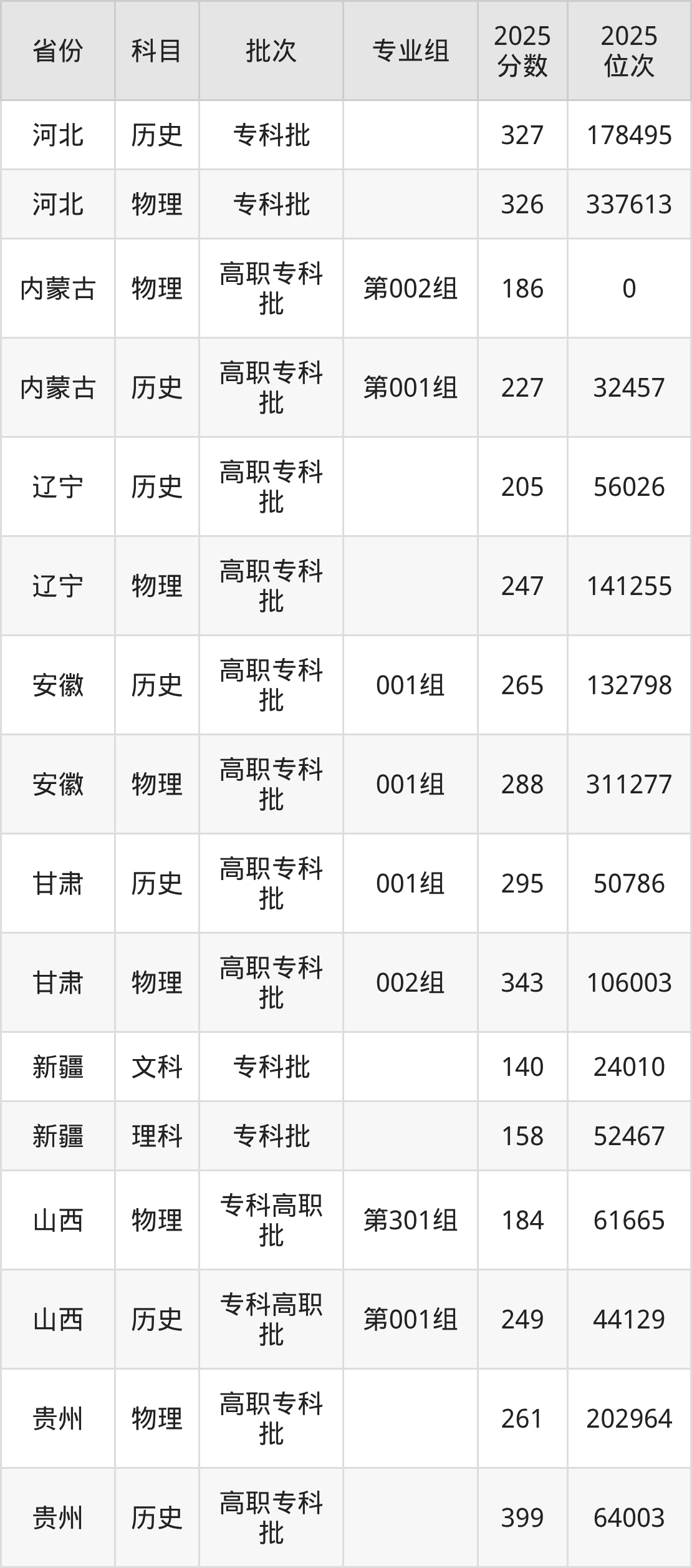 下面是2025年昆玉职业技术学院全国录取分数线一览表,请查阅。