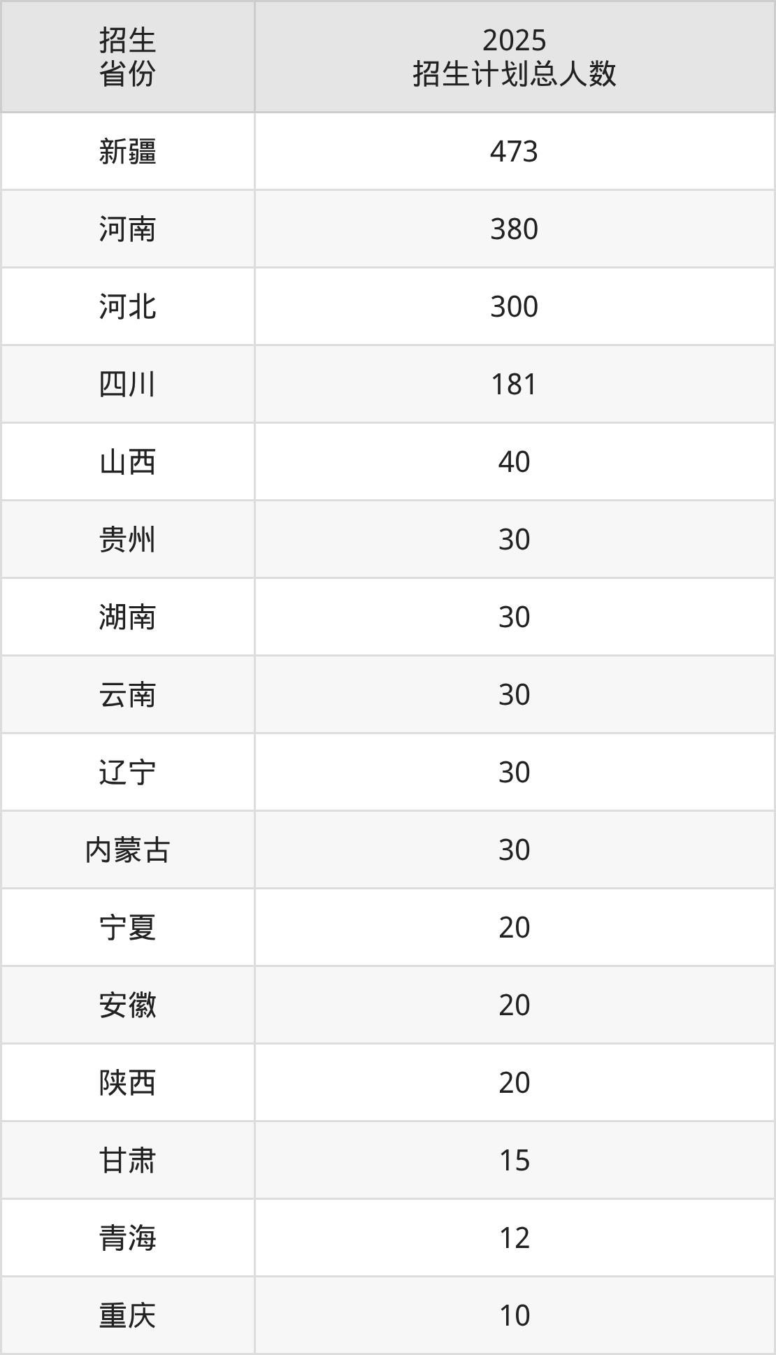 2025年昆玉职业技术学院面向全国16个省市开展专科招生;招生专业共17个,招生人数共1621人。2025年在新疆维吾尔自治区招生计划总人数是473人,其中,昆玉职业技术学院在新疆维吾尔自治区招生人数最多的是计算机应用技术。昆玉职业技术学院在各省具体招生人数情况如下表。