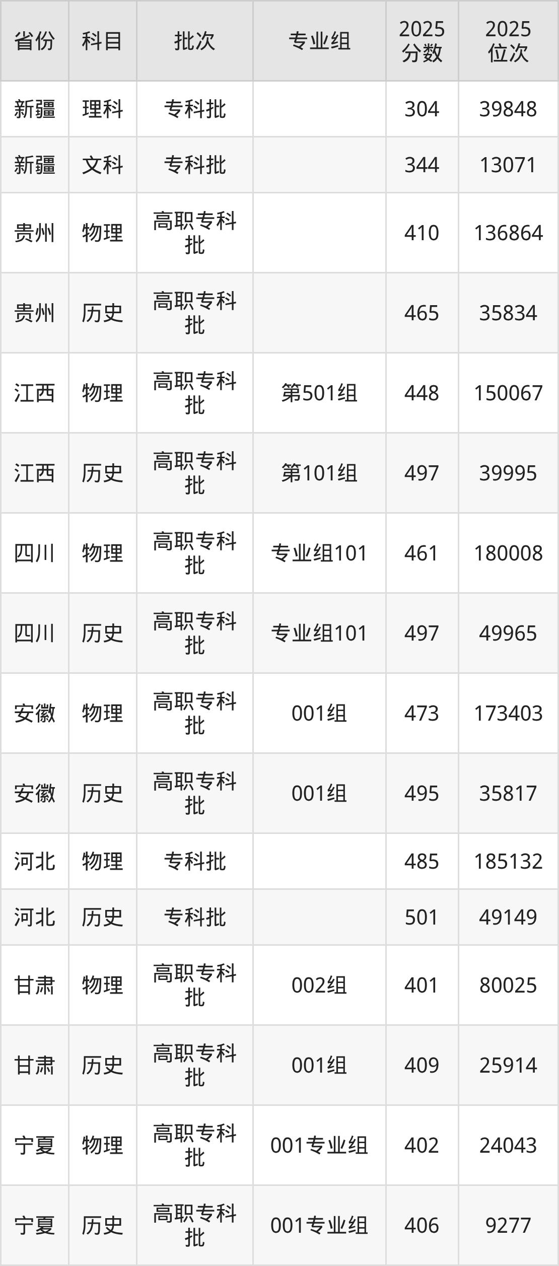 2025年投档录取最低分为465分,录取最低位次为35834名。