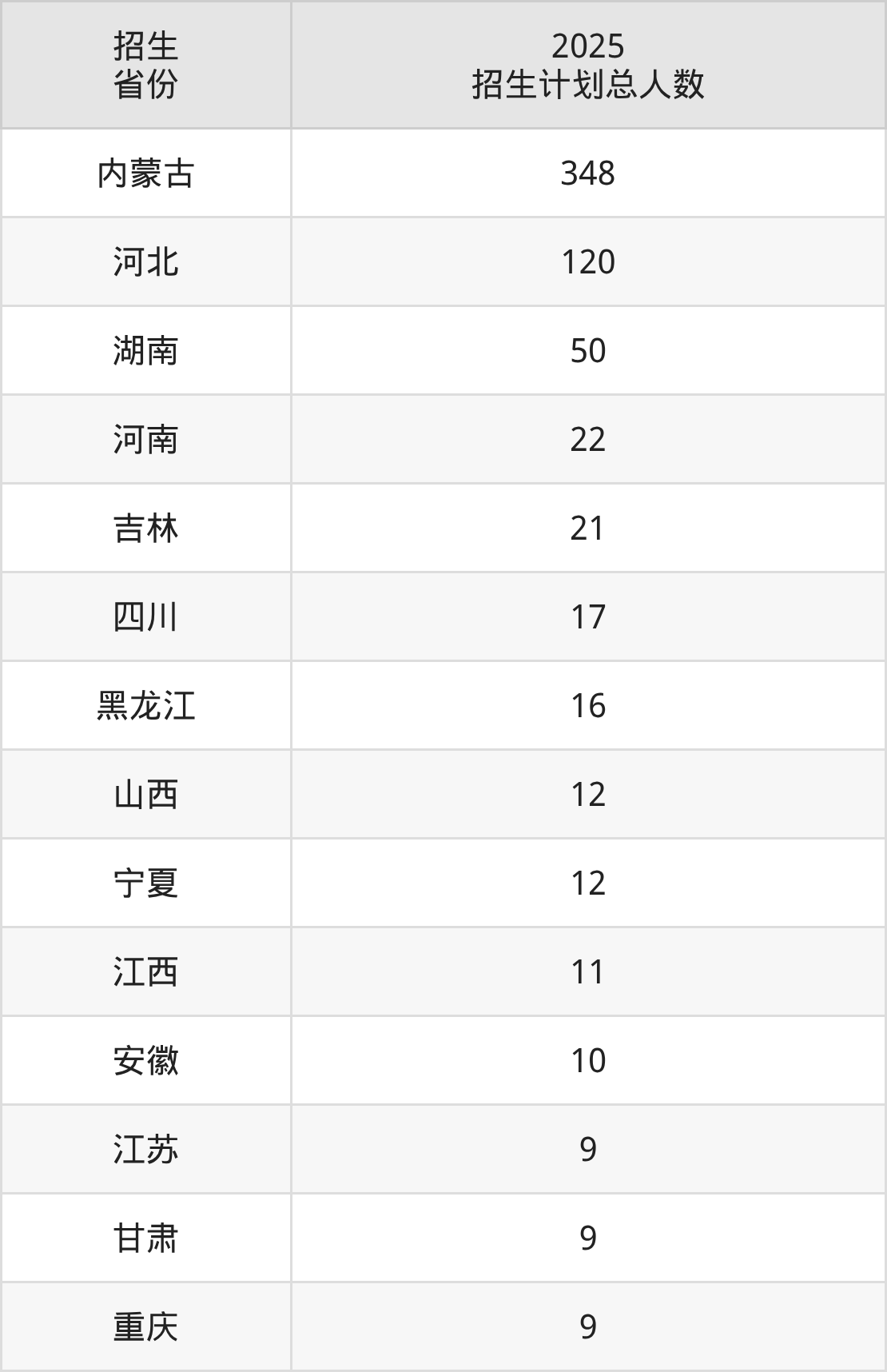 2025年满洲里俄语职业学院面向全国14个省市开展专科招生;招生专业共16个,招生人数共666人。2025年在内蒙古自治区招生计划总人数是348人,其中,满洲里俄语职业学院在内蒙古自治区招生人数最多的是现代文秘。满洲里俄语职业学院在各省具体招生人数情况如下表。