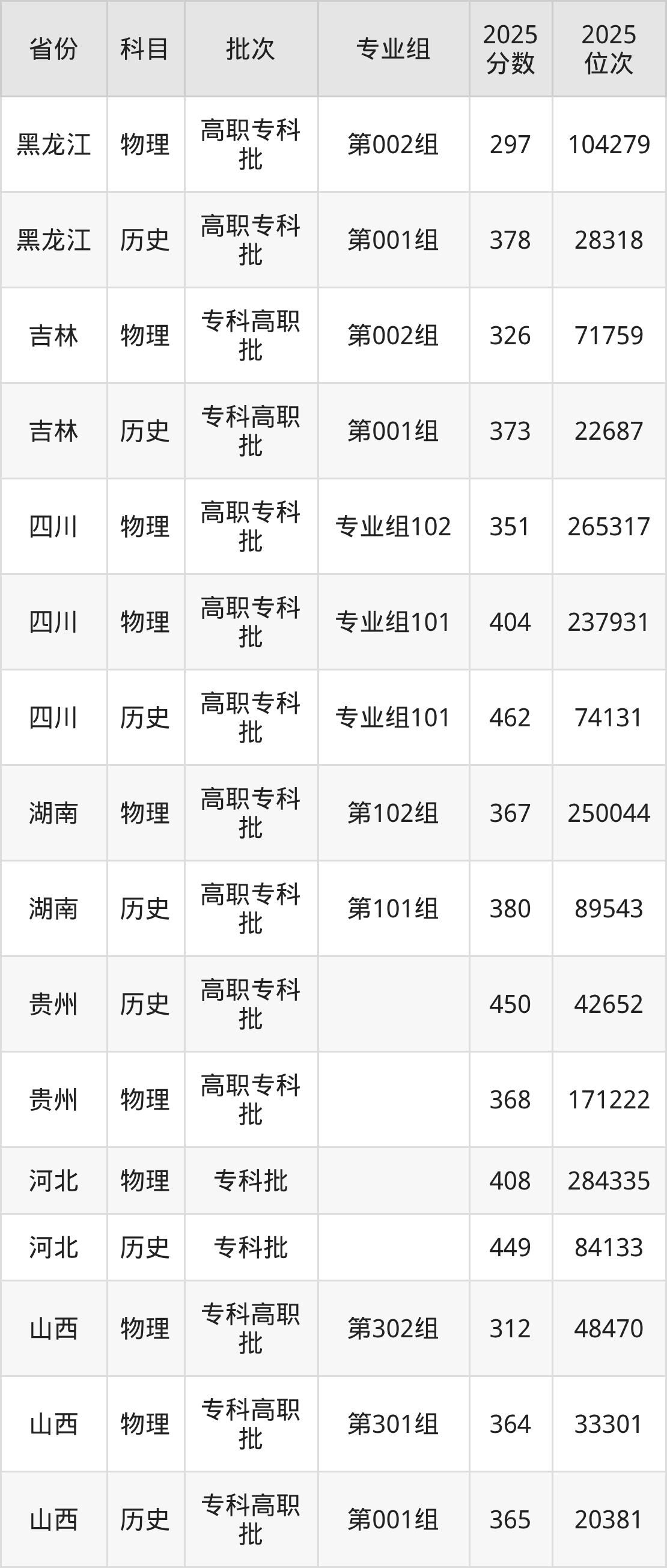 2025年投档录取最低分为450分,录取最低位次为42652名。