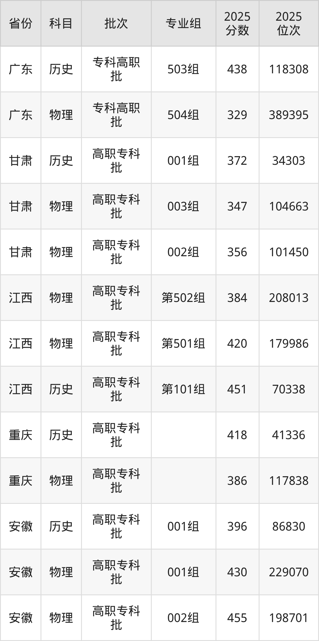 专科历史类投档录取最低449分,专科物理类投档录取最低408分