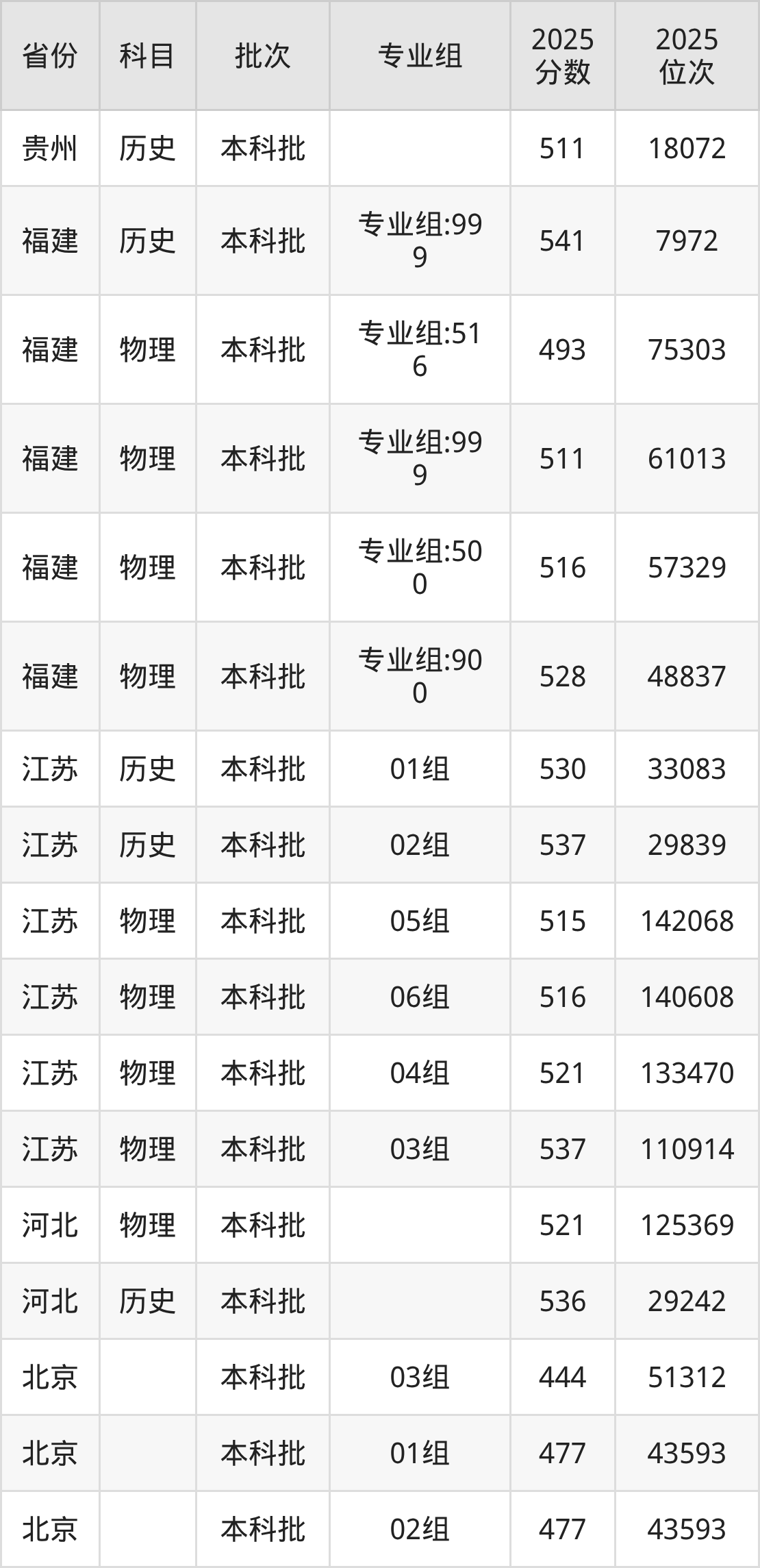 2025年投档录取最低分为511分,录取最低位次为15080名。