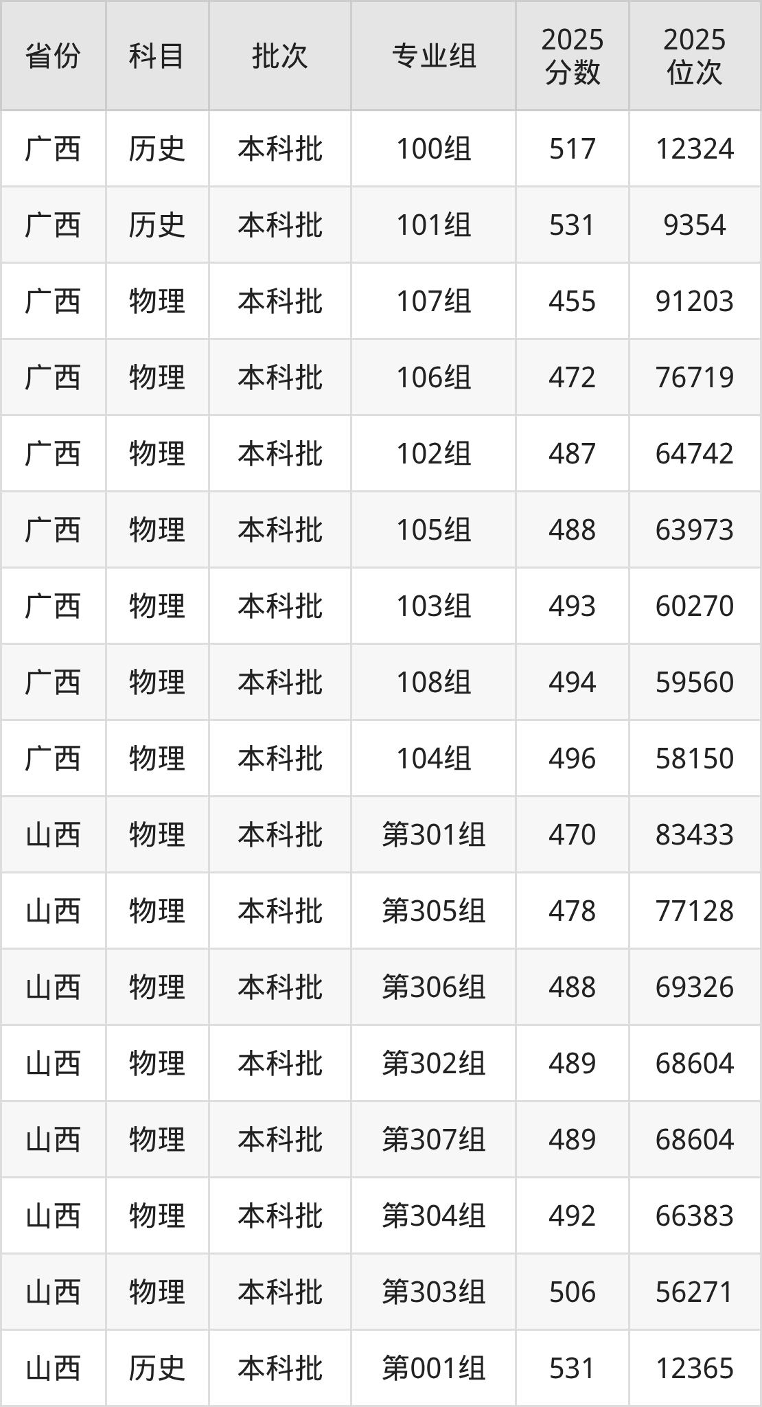岭南师范学院第301组:2025年投档录取最低分为470分,录取最低位次为83433名。