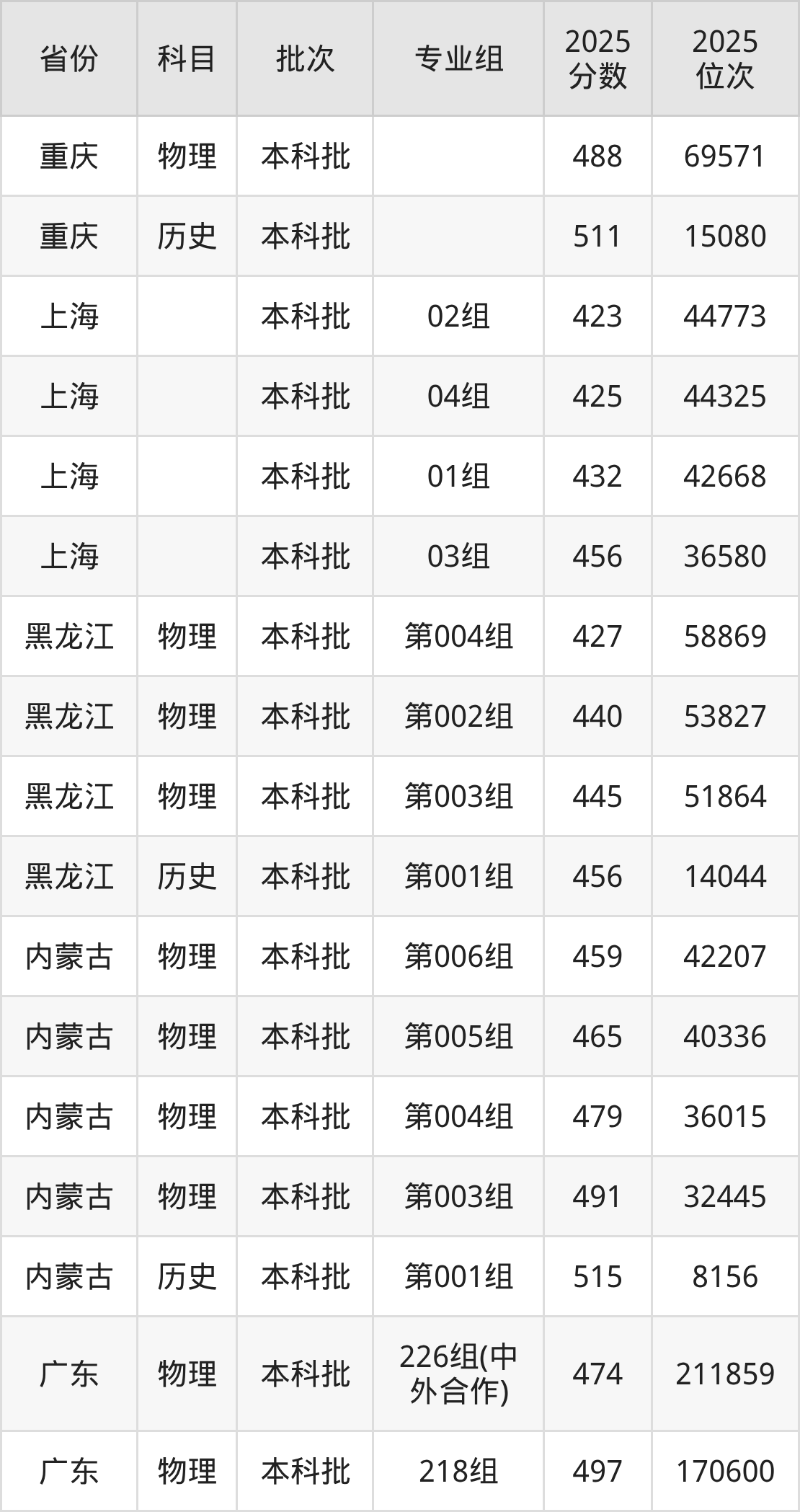 2025年投档录取最低分为488分,录取最低位次为69571名。