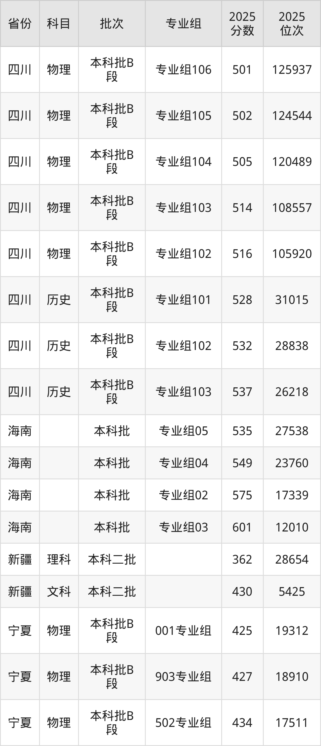 岭南师范学院专业组106:2025年投档录取最低分为501分,录取最低位次为125937名。