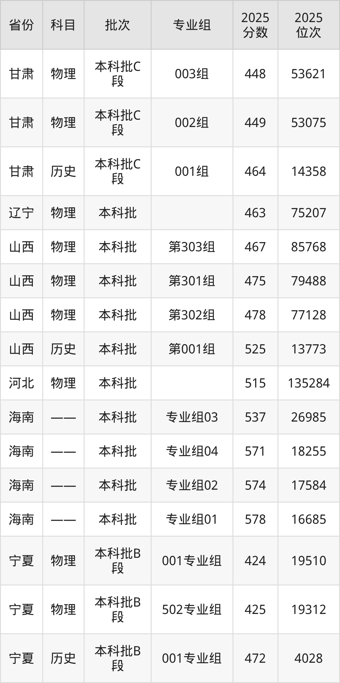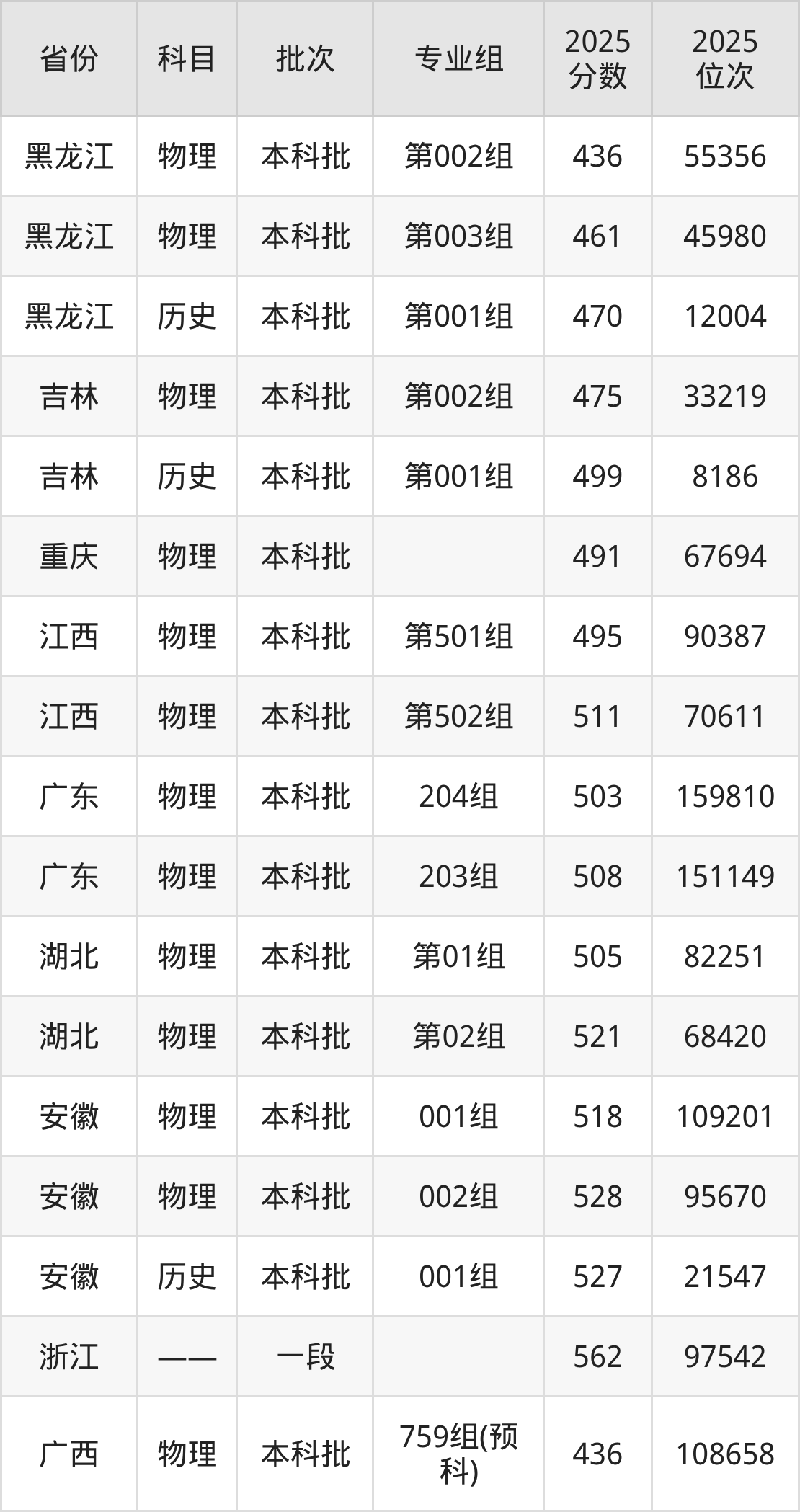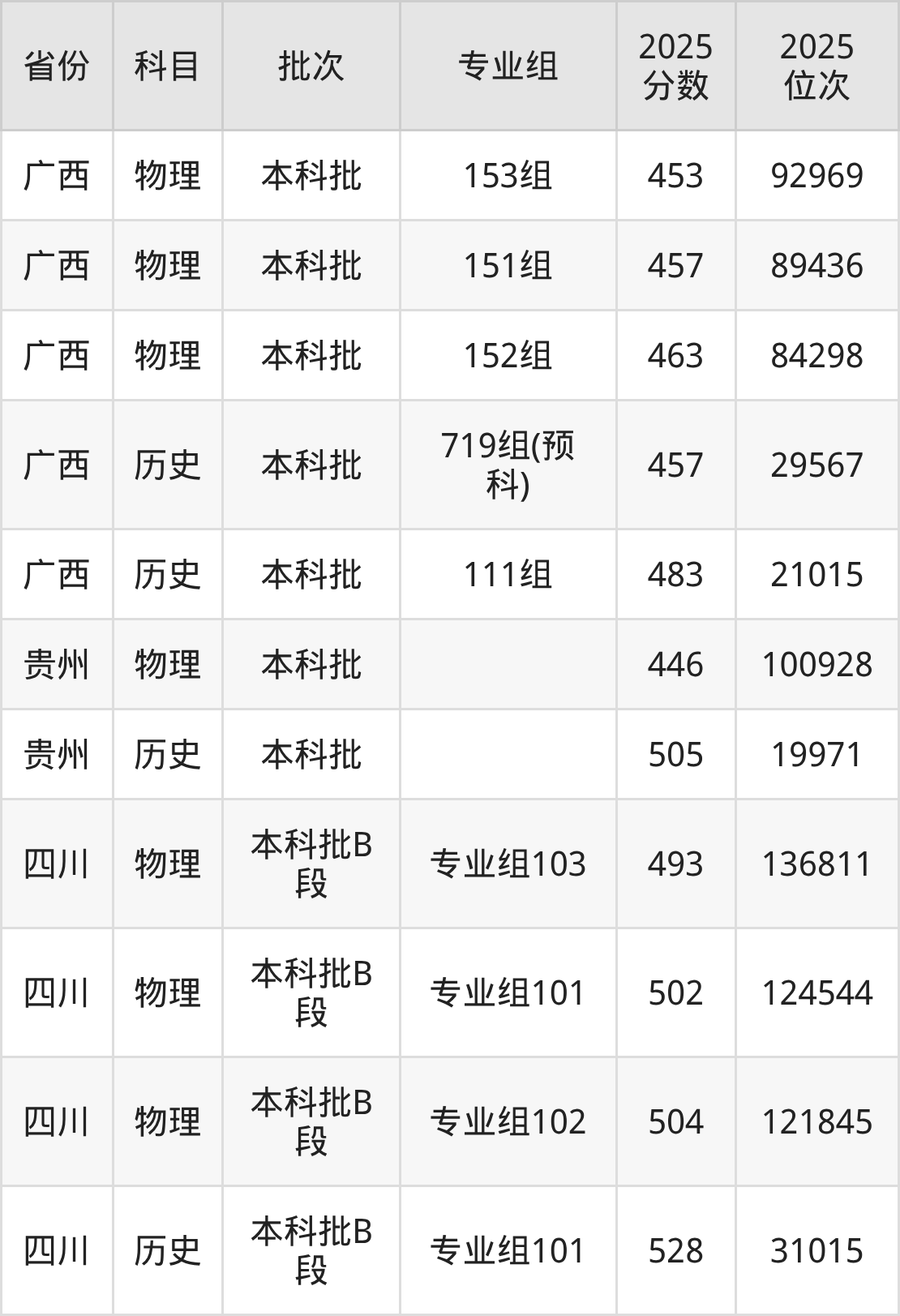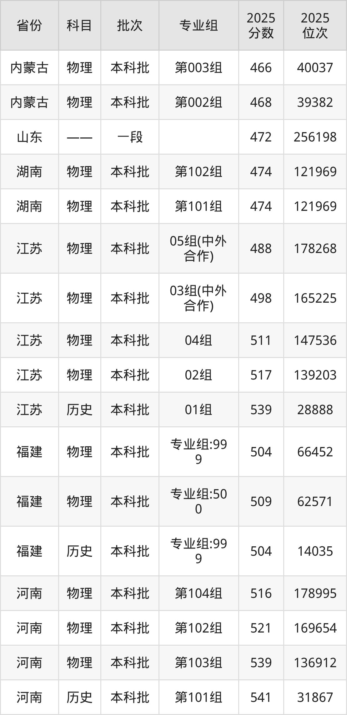 2025年在本科物理类进行招生,各专业组分数线详情如下: