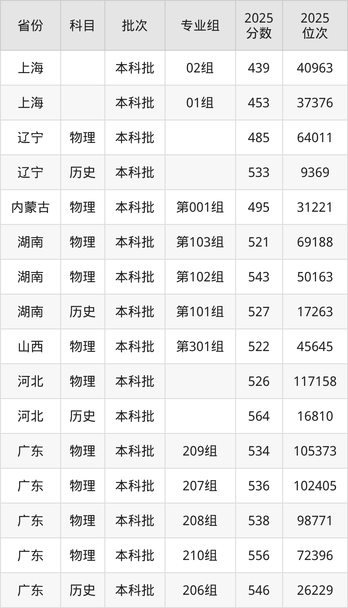 2025年投档录取最低分为533分,录取最低位次为9369名。