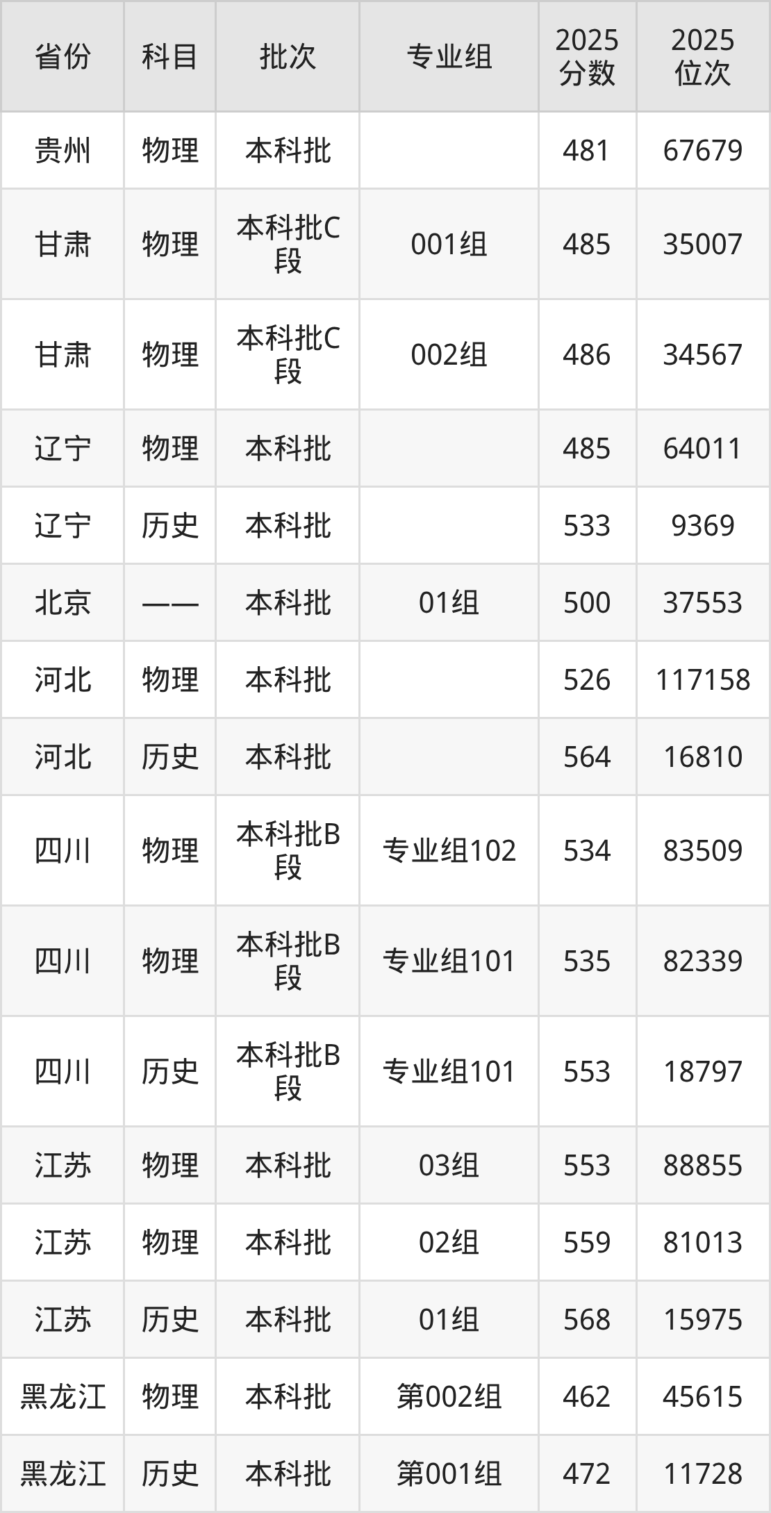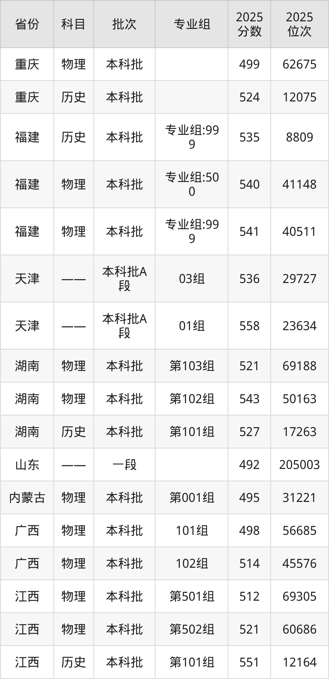 普通类本科物理类最低553分,本科历史类最低568分