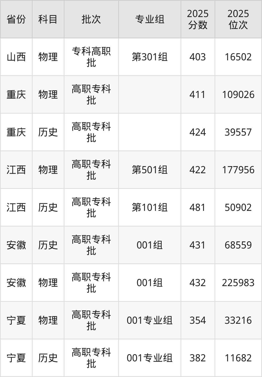 焦作大学第301组:2025年投档录取最低分为403分,录取最低位次为16502名。