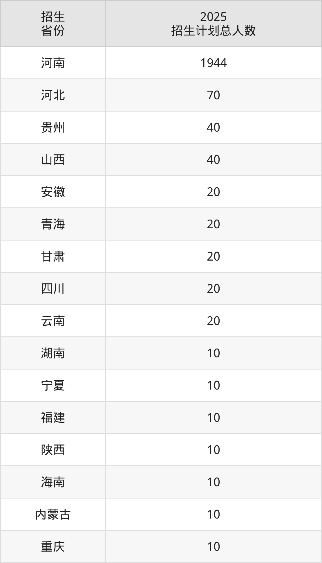 2025年焦作大学面向全国19个省市开展专科招生;招生专业共33个,招生人数共2287人。