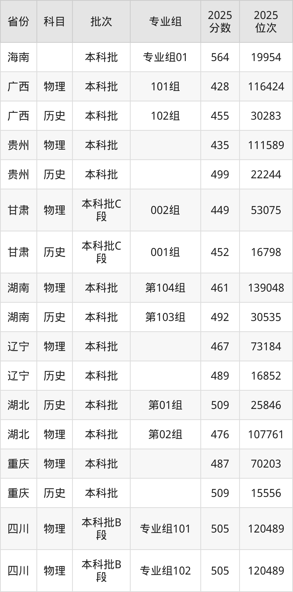 2025年投档录取最低分为489分,录取最低位次为16852名。
