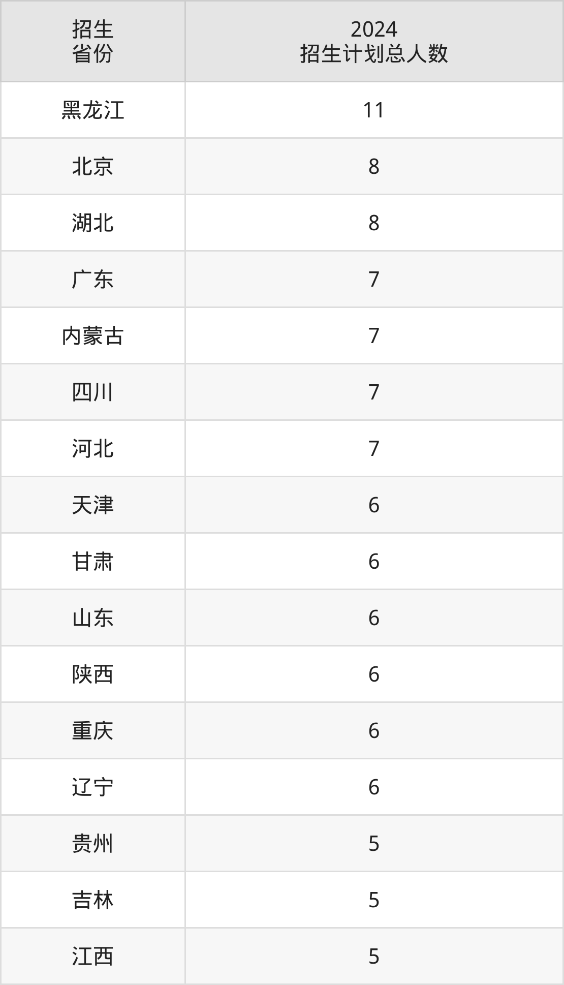 2024年中国消防救援学院面向全国17个省市开展本科招生;招生专业共8个,招生人数共111人。2024年在北京市招生计划总人数是8人,其中,中国消防救援学院在北京市招生人数最多的是飞行器控制与信息工程。中国消防救援学院在各省具体招生人数情况如下表。