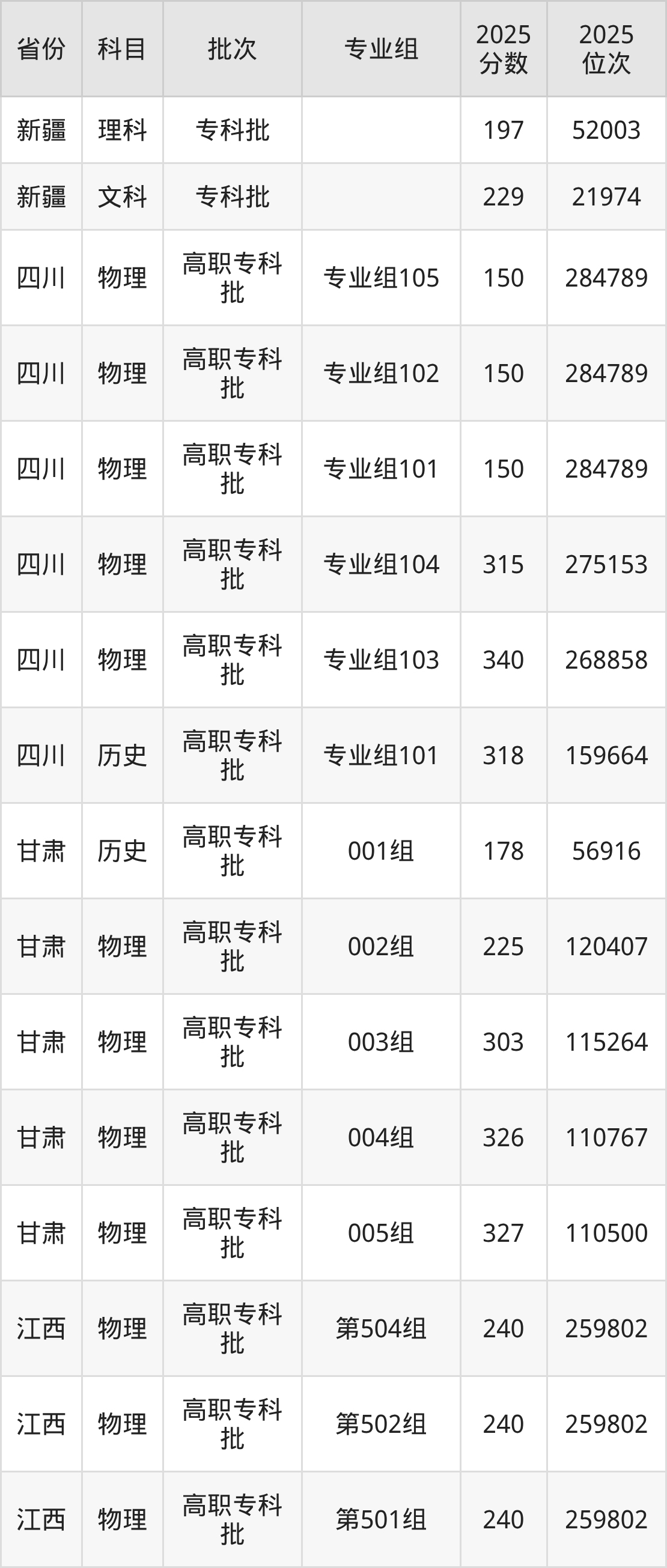 下面是2025年新疆应用职业技术学院全国录取分数线一览表,请查阅。