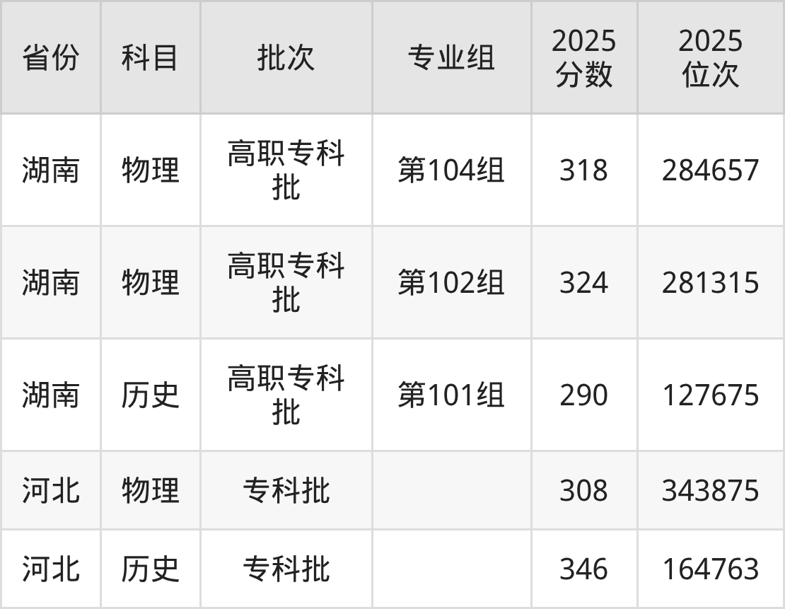 新疆应用职业技术学院专业组104:2025年投档录取最低分为315分,录取最低位次为275153名。
