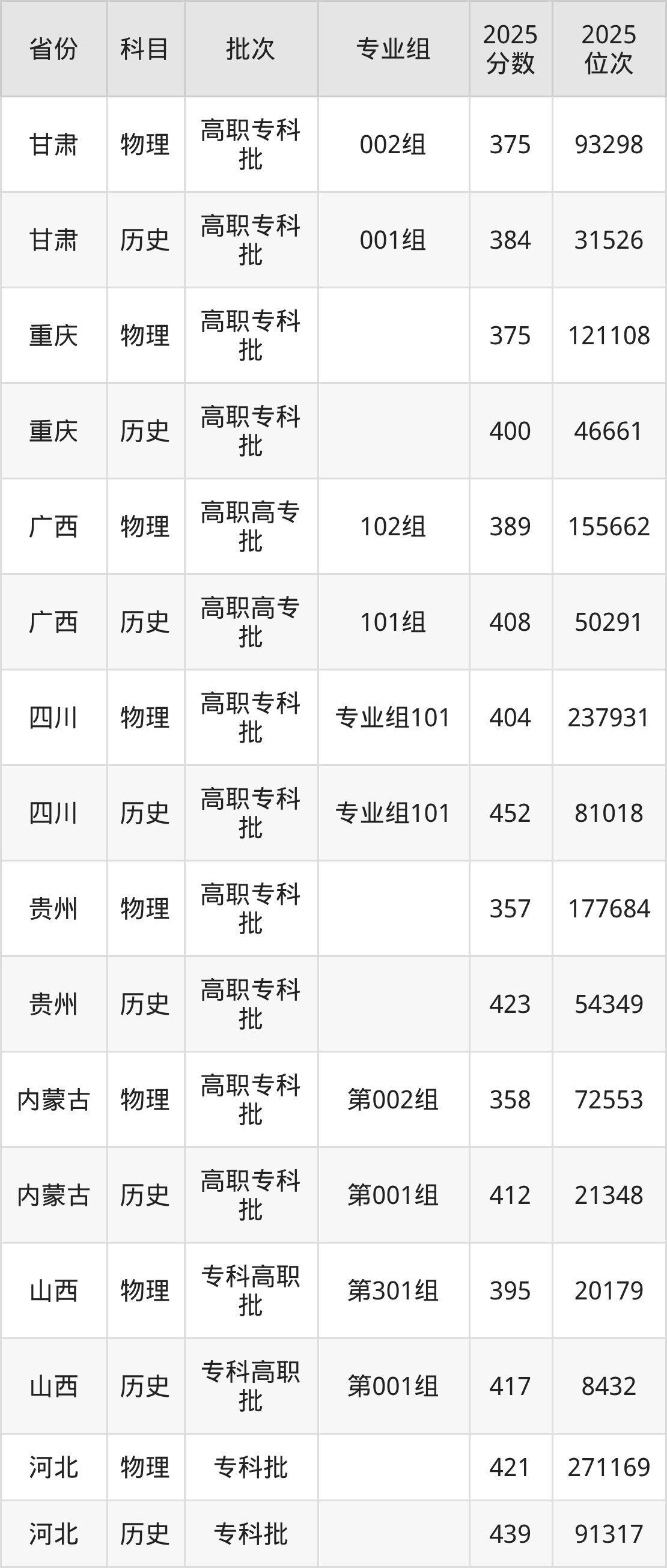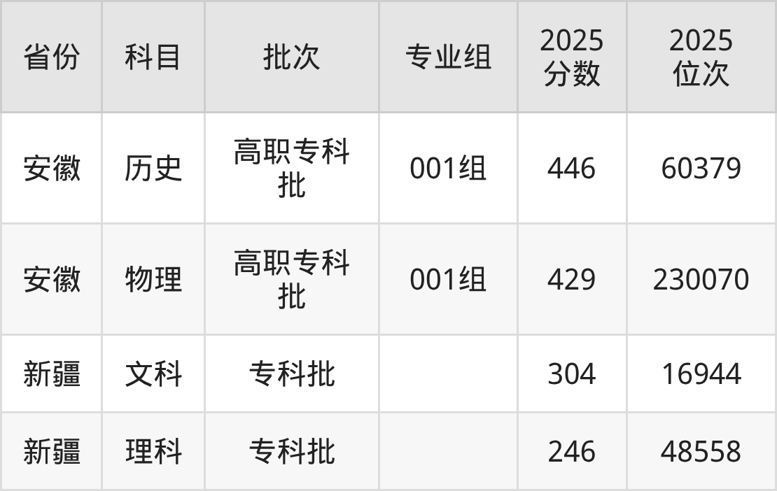 重庆商务职业学院001组:2025年投档录取最低分为446分,录取最低位次为60379名。
