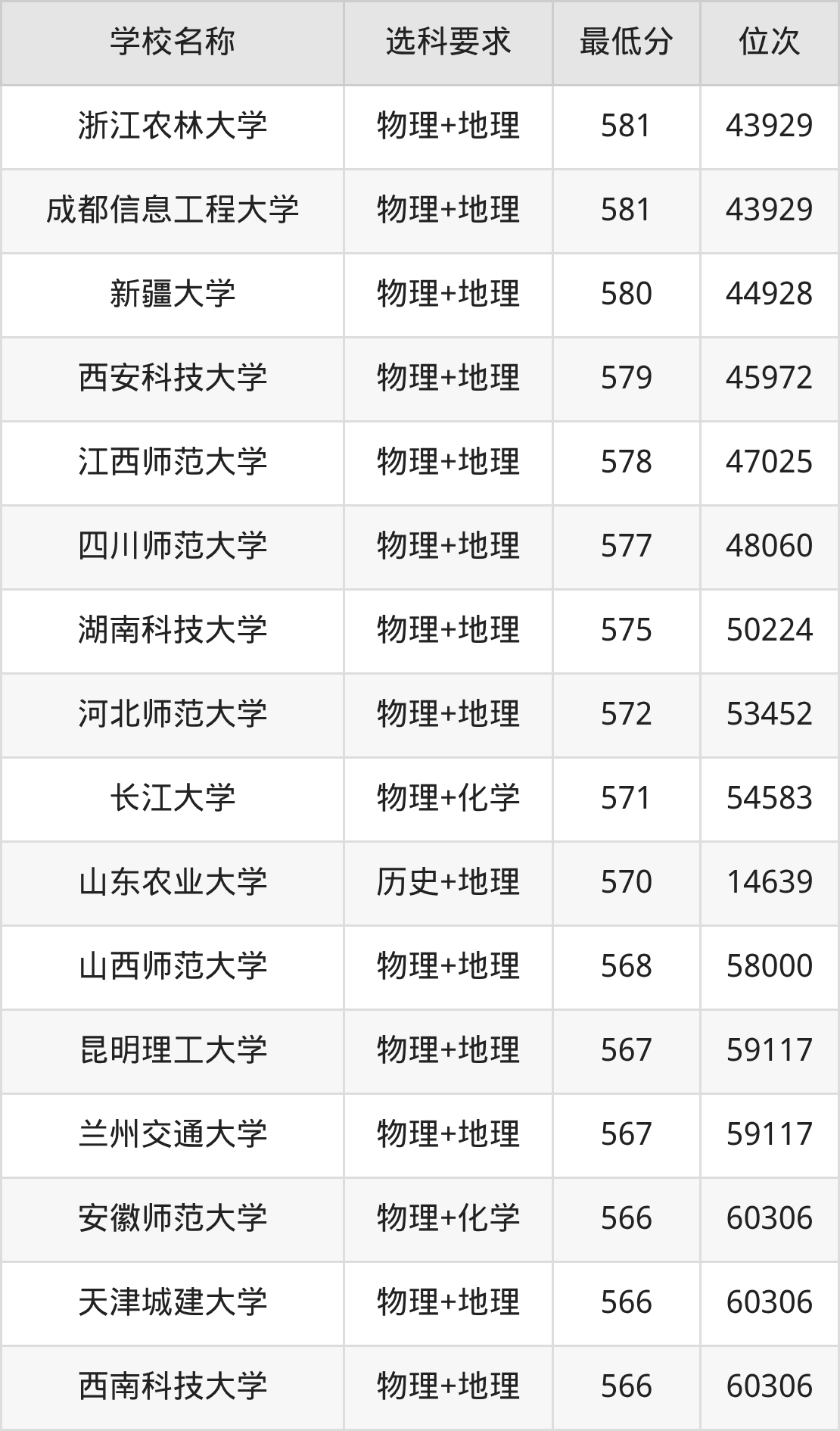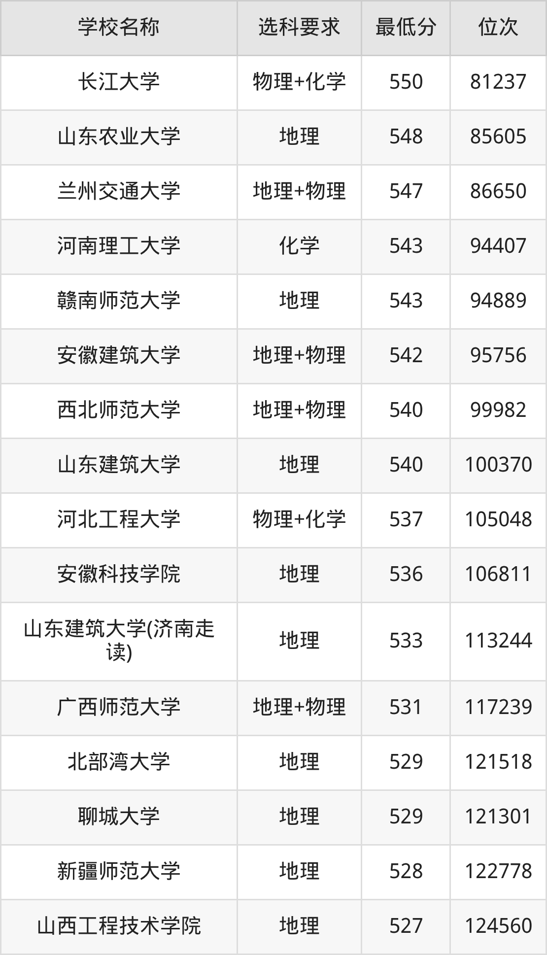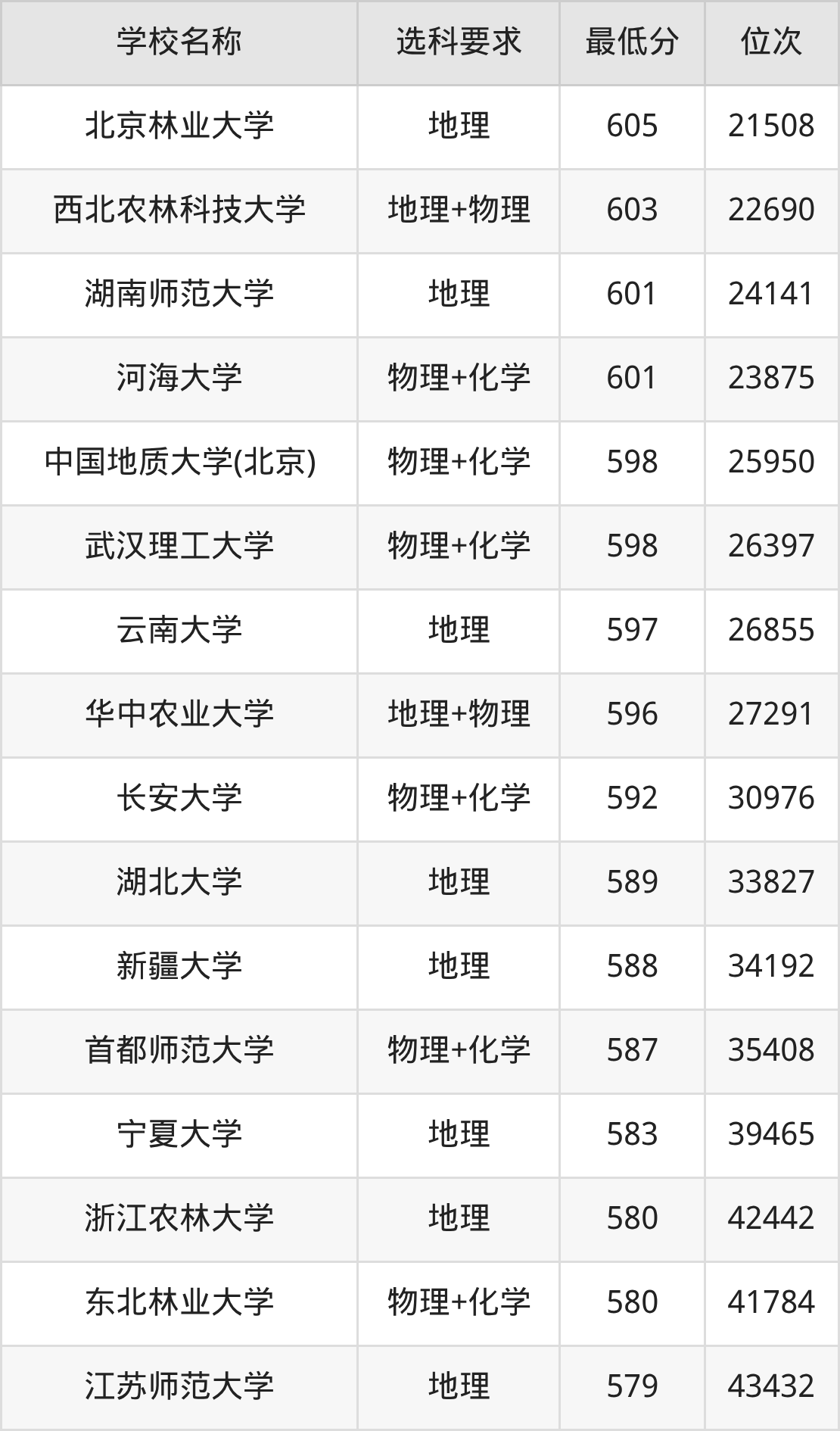 在山东招生的院校中,有33所要求考生必选“地理”,如北京林业大学、湖南师范大学等;有16所要求考生必选“地理+物理”,如西北农林科技大学、华中农业大学等。