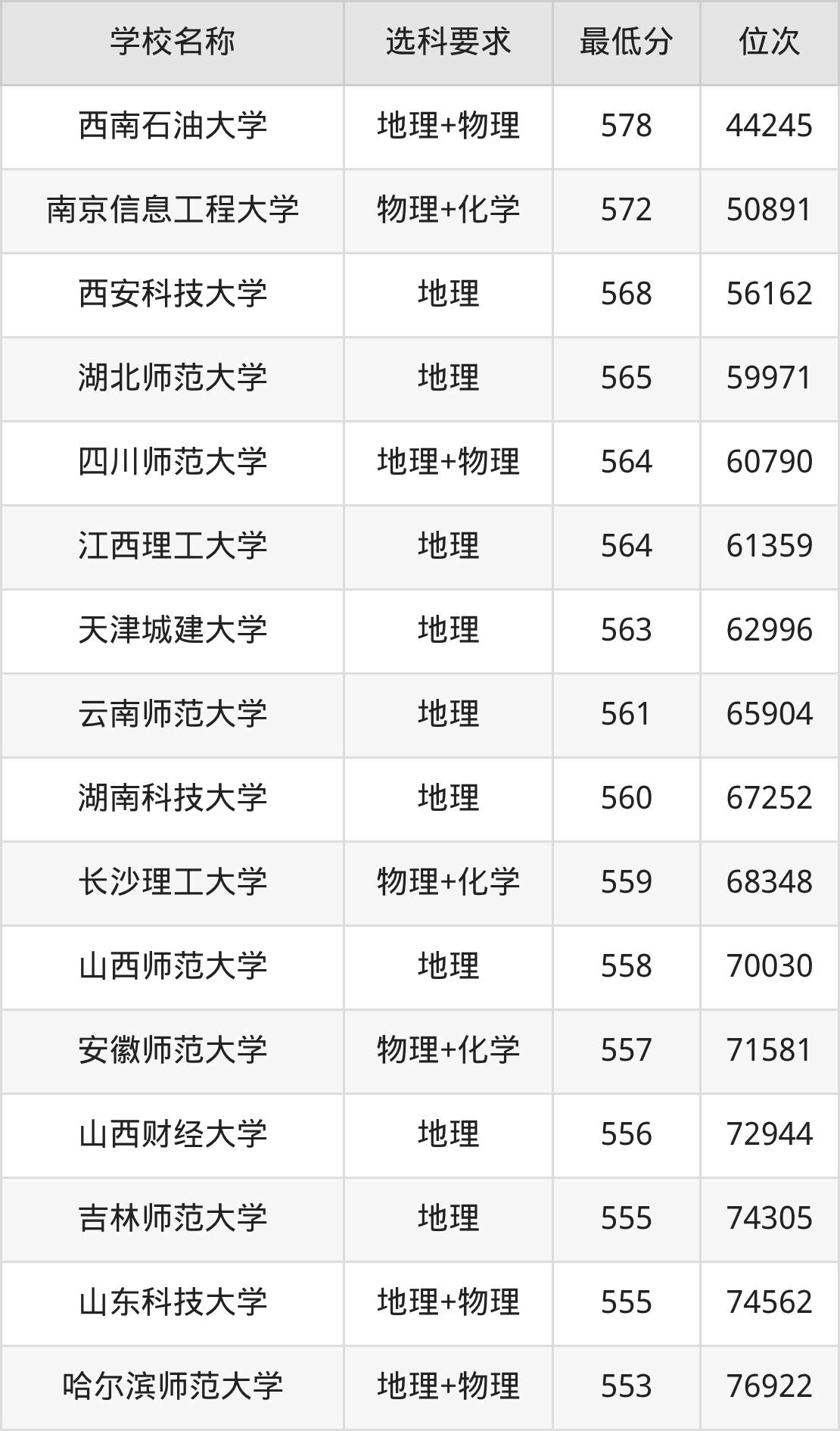 需要注意的是,地理信息科学专业大学中有47所要求考生必选“物理+地理”,如北京林业大学、西北农林科技大学等;有22所要求考生必选“物理+化学”,如武汉理工大学、中国地质大学(北京)等,因此大家在报考前要提前了解清楚专业选科要求。